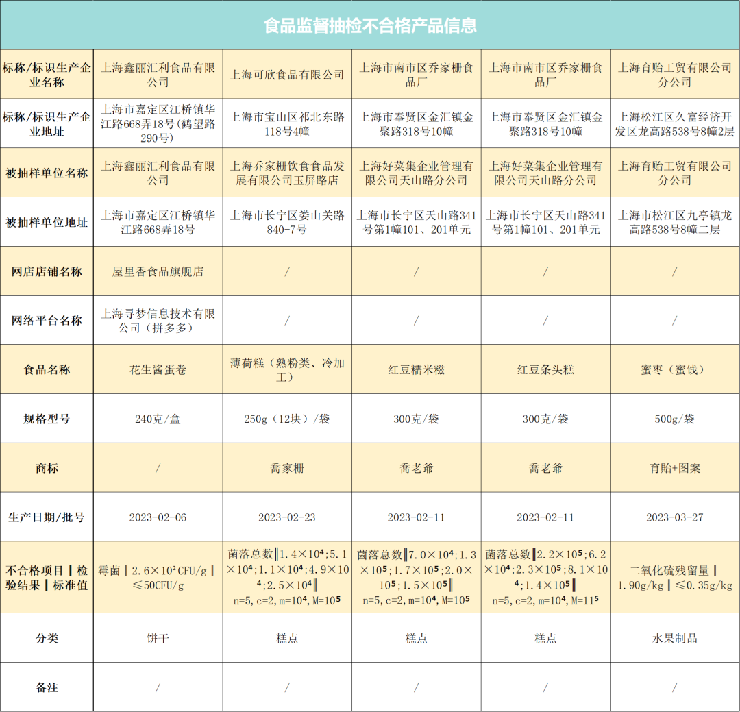 糕点、蜜枣…这些食品抽检不合格!