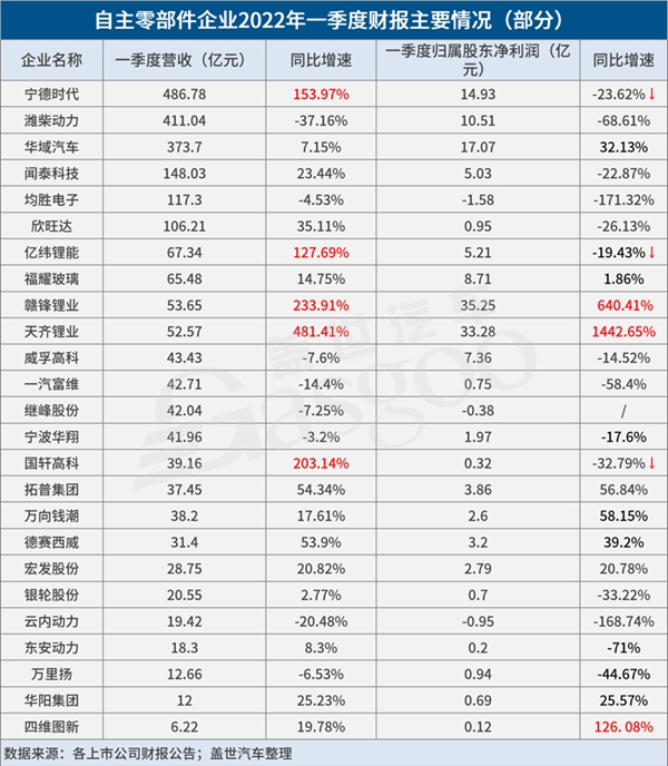 25家自主零部件企业一季报:净利最高暴增超14倍