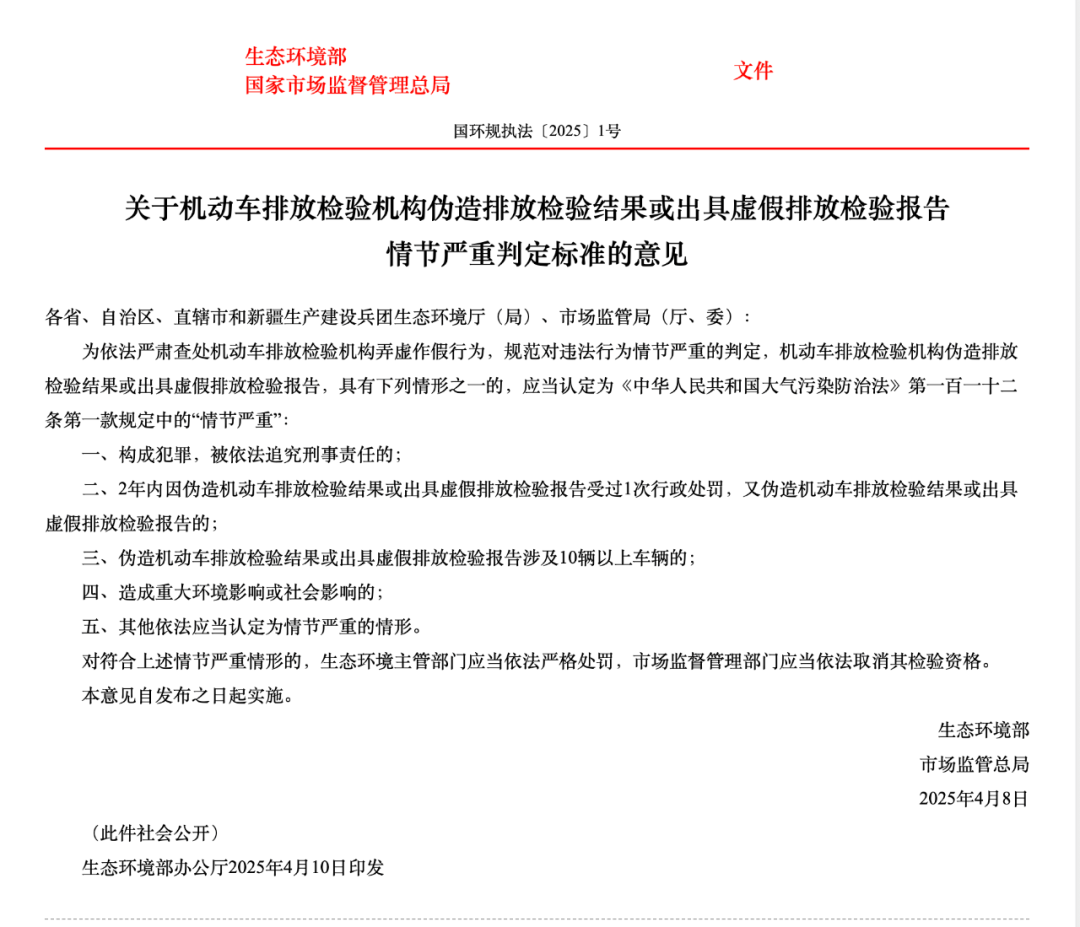 机动车排放检验造假“高压线”划定,五类情节严重情形造假机构将被一票否决