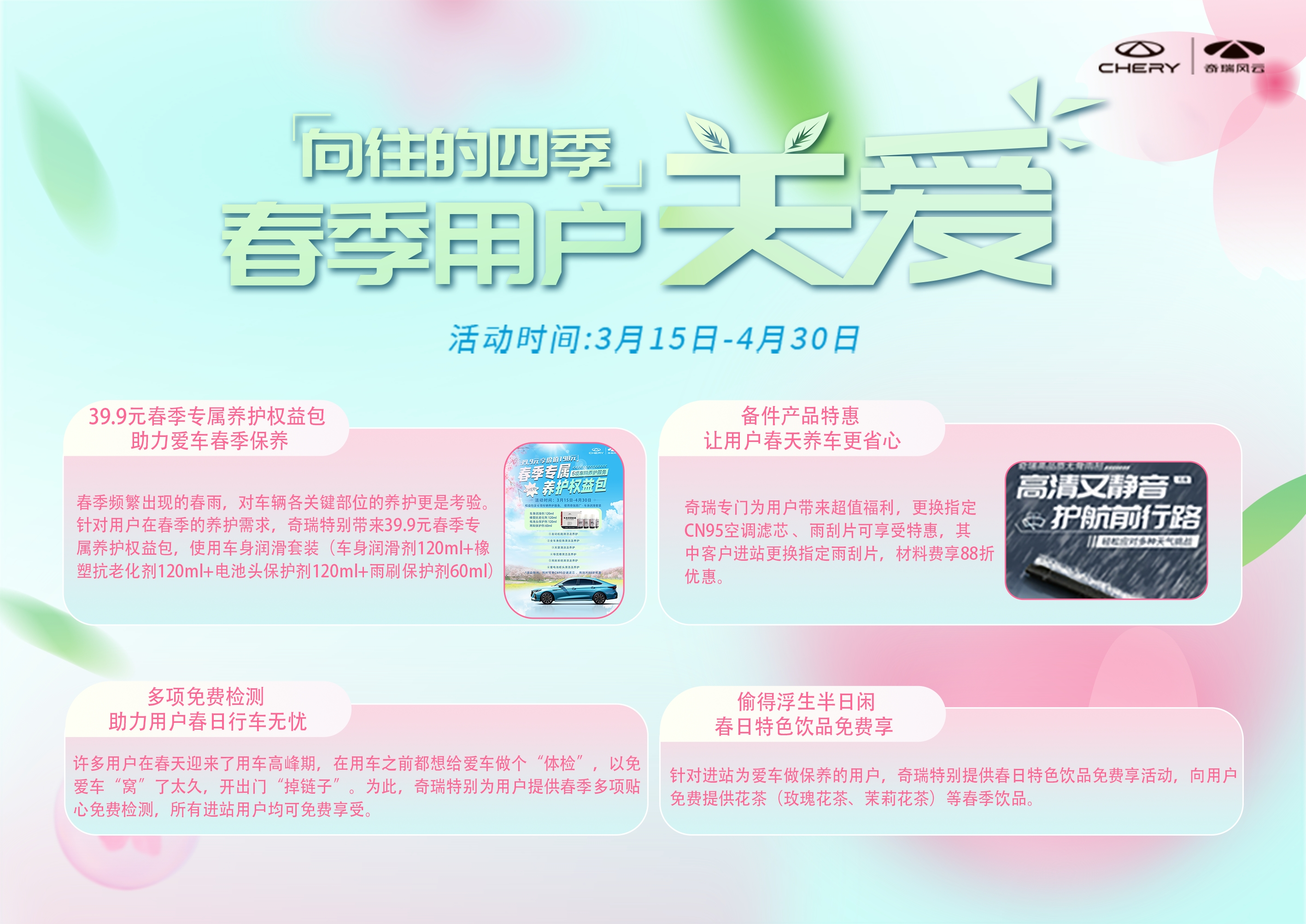 奇瑞特推春季用户关爱,陪伴用户共度美好春天