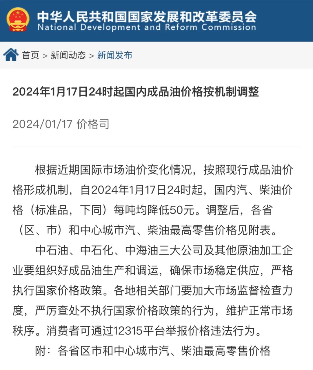 油价,下调了!附:各省市区价格表