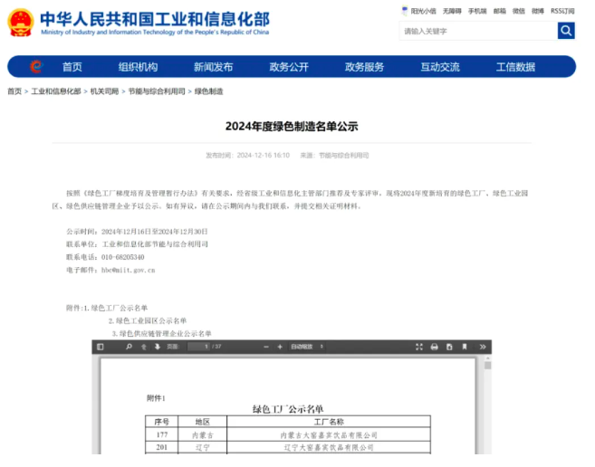 近日,国家工信部公布了2024年度绿色智造名单,内蒙古大窑嘉宾饮品有限公司和辽宁大窑嘉宾饮品有限公司双双荣获国家级绿色工厂称号,标志着大窑饮品在绿色智造领域再创佳绩。此...