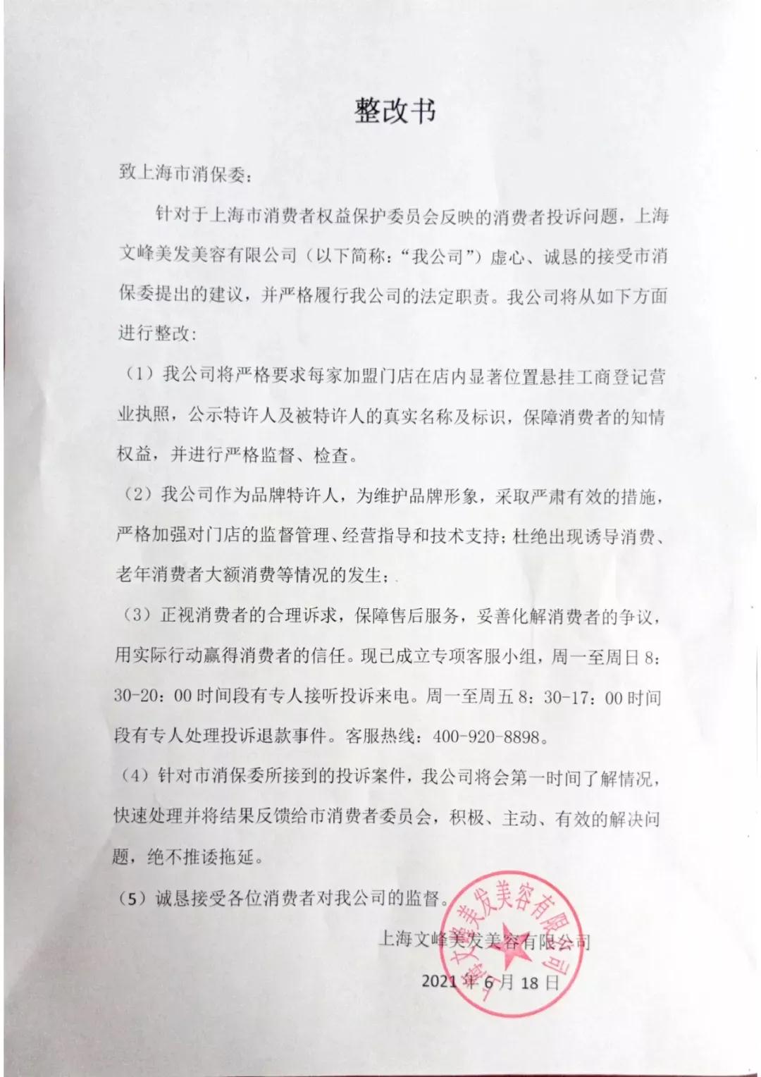 因大额消费拒不退款等,文峰美发美容再被上海消保委约谈