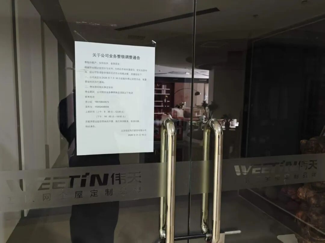 37户定制伟天家居后门店停业,总部表态