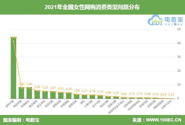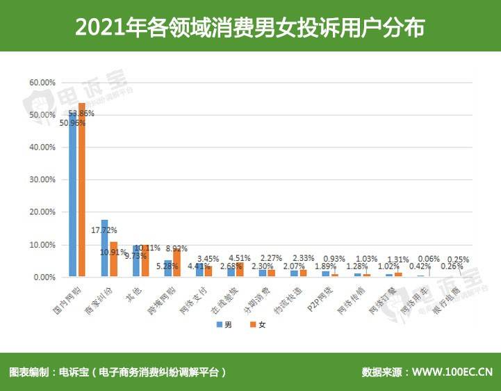随着三八“女神节”即将到来,女性的消费力和消费需求成为众网络消费平台的关注焦点。现如今,女性群体有了更多追求美好的想法,更加注重为了愉悦自己而生活,促使“悦己型消费”崛起。 同时,就在近年,三八节期间特别火爆的茶艺、花艺、油画等沙龙,已经跳脱出购买实物产品的消费层次,成为一种更加个性化、精致化的消费体验,并由此传达出女性自立、自爱、自信意识的日渐增强,女性朋友更加懂得如何自我成长和个性绽放。 在网络消费中,女性力量不仅是不可或缺,更是重中之重,女性消费权益的保障更应得到重视。2021年3·15“国际消费者权益日”即将到来,网络消费平台又将迎来一次大考。2022年3月7日,网经社电子商务研究中心发布了《2021年中国女性网络消费投诉数据与典型案例报告》。报告主要公布了2021年女性网络消费投诉数据及《女性网络消费三十大典型投诉案例》。 女性用户投诉占比超男性 ![]() 据国内网络消费调解平台“电诉宝”受理用户维权案例显示,2021年全年网络消费投诉用户性别占比分为为男性(45.17%)、女性(54.76%)。女性用户占据互联网“半壁江山”,在网络消费中更是占据重要的位置。从年度消费维权数据中可以看到,这在一定程度上也彰显了现代女性在购买某类产品的时候会有冲动心理,人们购买某一件用品时,也许在浏览网页的过程中,电商平台会自主的推荐给消费者特殊用品。无论是趋于好奇心,还是自身就有所需要,女性消费者的冲动程度要比男性消费者更高。 ![]() 通过13个网络消费领域中男女投诉用户对比,可以看到在国内网购、跨境网购、在线差旅、物流快递、网络订餐及其他这6个领域中,女性用户维权力度高于男性,其中国内网购女性投诉用户达53.86%,位列第一,其次是其他(10.11%)、跨境网购(8.92%)分别占据第二、三位,在线差旅(4.51%)、物流快递(2.33%)、网络订餐(1.31%)。 在上述6个领域中,可以看出女性用户占据人数较多之外,也各有特点。一是疫情期间,相比往年,女性对国内网购更为追崇,尤其在护肤品、包包以及服饰等商品购买上,但也间接凸显出国内网购中消费问题不少;二是女性用户逐渐成为旅游消费市场的核心人群,也是家庭出游决策的主导者,也更愿意花钱在享受生活上。 可以看到,“她经济”正在打破固有的性别局限,逐渐成为存量竞争下新的增长极。同时,电商、社交、颠覆技术与新兴商业模式的交融,正影响着女性消费群体的消费角色、消费态度和消费诉求。深耕场景消费和体验经济,挖掘女性“触发购买”的潜力,则是品牌把握“她经济”这个新风口的关键。 80、90后女性成维权“主力军” ![]() 2021年全国女性网购消费投诉年龄段分布主要集中在20-30岁(46.02%)、30-40岁(40.67%)、40-60岁(12.19%)、60岁以上(1.03%)、20岁以下(0.09%)。可以看出80、90后女性是当下网络消费的主力军,维权意识更强。但值得一起的是,或出于照顾家庭需要,或出于提升自我需要,对某些品类的商品依旧是所有年龄段女性用户的消费需求。 退款、发货等女性购物“顽疾”仍存 ![]() 据“电诉宝”显示,2021年全国女性网购用户投诉问题类型排名前十的依次为:退款问题(39.53%)、商品质量(7.80%)、网络欺诈(7.80%)、售后服务(5.69%)、霸王条款(5.25%)、发货问题(5.07%)、虚假促销(4.51%)、退换货难(3.08%)、其它(2.77%)、订单问题(2.74%)。可以看出,女性购物时,考虑的因素除了价格、品质等传统购物因素之外,售后问题、促销玩法、发货时效性都可能成为限制女性下单的理由。 女性用户投诉金额500元以下近四成 ![]() 2021年网络消费女性用户投诉金额区间前三依次为1000-5000元(23.69%)、100-500元(21.55%)、0-100元(15.05%),其他依次为5000-10000元(11.29%)、500-1000元(10.01%)、10000元以上(9.89%)、未选择金额(8.52%)。 在网络购物中,女性消费主要还是集中在小件物品、衣服饰品等客单价相对平衡的品类上,但在大件或高价商品上也丝毫不逊色。 北上广江浙女性投诉用户位列前三 ![]() 2021年“电诉宝”受理投诉女性网购用户聚集地区TOP20依次为广东省(13.37%)、北京市(7.74%)、上海市(7.56%)、江苏省(7.56%)、浙江省(7.37%)、山东省(5.50%)、四川省(4.94%)、湖北省(4.20%)、辽宁省(3.73%)、福建省(3.20%)、陕西省(2.95%)、河北省(2.83%)、河南省(2.83%)、云南省(2.67%)、湖南省(2.52%)、安徽省(2.11%)、重庆市(1.90%)、天津市(1.87%)、贵州省(1.83%)、山西省(1.68%)。 通过这组数据可以看出,一线市场的女性消费保有量高,二线到六线市场女性消费占比均有提升,地域经济发展为女性消费带来的差异仍然存在,但是差异也逐渐越来越小。对于新时代女性消费的特色,随着多元、丰富的消费观形成,不同线级城市之间的消费差异越来越小,支撑起“她力量”的,正是这样一个个有着自己消费观与消费特色女性形象。同时,也可以说,无论城市大小,都蕴藏着市场机遇。 数字零售典型投诉案例发布 叮咚买菜 微店 有赞 红布林等10家平台入选 2021年女性网购在数字零售领域中,据“电诉宝”受理用户维权案例,我们从中选取十大典型投诉案例,涉及叮咚买菜、微店、有赞、红布林、店宝宝、天天鉴宝、易果生鲜、波奇网、考拉海购、海淘免税店。 ![]() 数字生活典型投诉案例发布走着瞧旅行 侠侣亲子 旅划算 Boss职聘等10家平台入选 2021年女性网购在数字生活领域中,据“电诉宝”受理用户维权案例,我们从中选取十