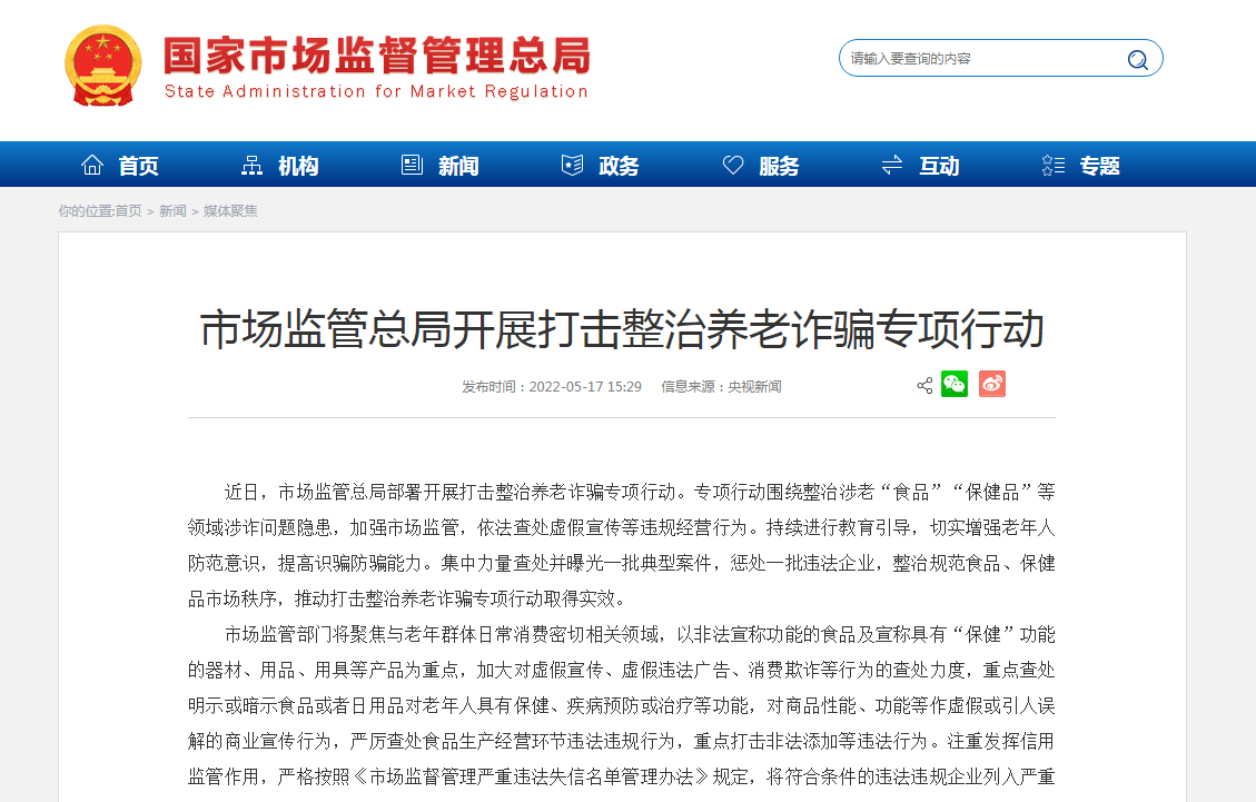 市场监管总局开展打击整治养老诈骗专项行动