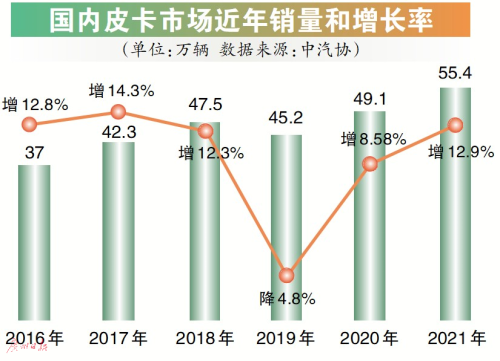 皮卡的“路”正一步步解禁 提到皮卡,“15年报废”“不让进城”一度困扰皮卡进入家庭,销量进展缓慢。但这一切正成为过去式。 4月25日,《国务院办公厅关于进一步释放消费潜力促进消费持续恢复的意见》第四条第13点中提出,“对皮卡车进城实施精细化管理,研究进一步放宽皮卡车进城限制”。这是自2016年皮卡解禁试点以来,对放开皮卡进城的举措形成最有力支撑。据统计,目前全国放宽皮卡进城限制的城市已达到70%以上,相比2015年,已有90多个城市对“皮卡解禁”进行了积极的响应,这成了皮卡市场焕发新机最大的动力。乘联会秘书长崔东树认为,将皮卡纳入促消费举措中,将对皮卡市场发展起到强有力的助推作用,有利于拉动皮卡潮玩消费文化的发展。 紧接着,《多用途货车通用技术条件》5月1日发布,更让皮卡迈出了身份转变的重要一步。业内人士指出,这将为交通管理执法部门提供技术参考依据,推动皮卡市场扩容。记者还留意到,在国家汽车促消费政策的总基调下,今年以来皮卡车型已在汽车三包、改装上牌等层面的政策上得到了大力支持。一系列放宽皮卡车辆管理和进城限制的政策,如可使用ETC、不用再喷字、贴反光条等,都大大提高皮卡的使用便利程度。 国内:皮卡成消费新增长点 国家信息中心信息化和产业发展部副处长谢国平在2021年举办的“第11届中国汽车论坛”上指出,从2015~2020年,皮卡的增长倍数达到1.51,而汽车总体市场倍数为1.03,乘用车仅为0.95。中汽协数据显示,去年皮卡销量首次突破50万辆大关,创下历年最高,其中皮卡产销分别完成54.7万辆和55.4万辆,同比分别增长11.2%和12.9%。分析表示,在政策放开、消费升级、需求升级的驱动下,皮卡市场正激发起供给热情,成为汽车产业的新蓝海。 “虽然皮卡当前体量还不算大,但它表现出了非常好的成长性。”谢国平说。她表示,皮卡的产品属性正从工具属性向消费属性转变,带动越野、自驾游、玩车、改装等新汽车消费文化。皮卡的解禁对城乡融合、拉动城乡之间经济往来,也起到推动作用。 中汽协分析认为,若大规模放开限行,皮卡市场将有百万级的增长空间。同时,国产皮卡企业供给呈现高端化、乘用化、多元化的全新形象,对消费者的吸引力大幅提升。 国际:皮卡成拓展海外市场的先锋 当前,虽然长城皮卡通过乘用化发展的优势占据市场较大份额,但比亚迪、吉利、长安、郑州日产、江淮、五菱等也陆续发布皮卡新产品布局消息,市场竞争将更激烈。皮卡,是中国汽车市场中,为数不多能“碾压”国外品牌的车型。乘联会数据显示,2020年中国品牌皮卡在国内终端消费的占比为88.8%,2021年更达到90%以上。乘联会指出,中国皮卡在产品力方面已经超越海外产品,更有潜力作为国产汽车品牌走向全球的突破口。 数据显示,当前皮卡在中国汽车出口中扮演了重要角色。中汽协数据显示,2021年全年我国皮卡出口数量为109411辆,同比增长119.34%,出口量占到我国皮卡全年产销量约五分之一,中国制造的皮卡远销新西兰、智利、南非、沙特、墨西哥等地。今年,在供应链紧张之下,皮卡出口仍再创新高,一季度累计出口41184辆,累计增长达54.84%。上汽大通、长城、长安、江淮等成为皮卡拓展海外“航线”的先锋品牌。 “当前,皮卡出口所占的比重在行业来看是比较高的,皮卡的出口比重近两年都在10%以上,而汽车总体只有4%。”谢国平指出,在全球市场,皮卡竞争并不如乘用车那么激烈,中国品牌在全球市场角逐的时候,主要面向的是美系的皮卡和日系的皮卡,较少会看到韩系、欧系这样的产品跟自主品牌竞争。 新趋势:皮卡也可以“低碳” 更经济环保的皮卡车型已在研发路上。 本周,马斯克公开“吐槽”其即将推出电动皮卡CyberTruck的首批订单数量,“已经超过了我们在投产后三年内可能完成的订单,这种需求甚至达到了荒谬的程度。”据特斯拉数据,截止至2021年5月,特斯拉CyberTruck的全球预订量已近150万辆。 在排放法规愈加严格的情况下,更智能、舒适的“低碳”皮卡已被众多车企“盯上”了。明年将是国内新能源皮卡“混战”的一年。2023年,比亚迪将基于纯电动以及DM双模混动技术推出该品牌的首款皮卡车型;长城汽车则计划今年年底前上市一款搭载混动9HAT变速箱的全尺寸皮卡;此外,福田、中兴、重汽等都有在一年内投放乘用化新能源皮卡的规划。在国际市场,福特、大众、通用都已经在着手纯电皮卡的落地,部分车型也计划正式进入中国市场。 或许很多人仍把皮卡当成“小众”产品,但事实上很多车企都开始有计划地推出皮卡了。既有轿车的舒适性、便利性,SUV的越野性,旅行车的休闲性及轻型货车的装载性;还可以经过改装拓展更多应用场景……这正是皮卡在乘用化、家用化后的优势,皮卡正在向“不小众”的方向持续扩宽道路。 促进皮卡发展的利好年内密集发布 1月1日 家用皮卡进“三包” 1月1日,国家市场监督管理总局发布的新《家用汽车产品修理更换退货责任规定》施行,该规定扩大了家用汽车三包范围,其中提及“对家用皮卡车实施三包,保护皮卡车消费者权益,促进皮卡车行业快速发展”。 1月1日 皮卡进碰撞测试 1月1日,中国汽车技术研究中心修订的《C-NCAP管理规则(2021年版)》实施,新车碰撞测试选车范围中增加了最大设计总质量≤3.5吨的皮卡(多用途货车) 4月1日 新增皮卡驾驶资质 4月