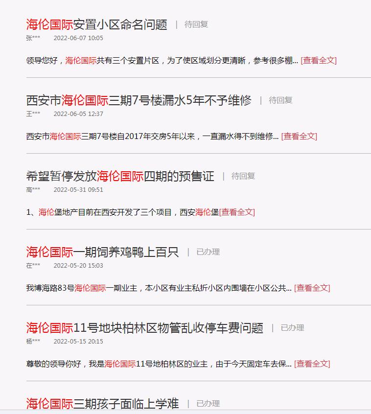 对于海伦堡地产来说,在上市之路上一直受阻,有业内认识开玩笑说,可能海伦堡有些项目的名字犯“太岁”吧,我们在查询城市留言板后,发现以海伦国际命名的项目,在各地都有投诉。