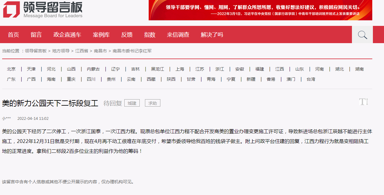 此次南昌涉及多次停工项目也正是合作开发楼盘,美的新力公园天下。 ![]()