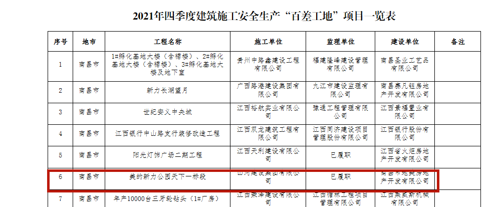 经查询该项目此前也被列入江西省2021年第四季度建筑施工安全生产“百差工地”名单。2021年3月,美的公园天下一标段项目工地曾发生一起高处坠落事故,造成一人死亡。从项目安全管理这块来看,该项目也存在很大问题。之前美的置业在贵州项目也因安全施工问题导致多人死亡。