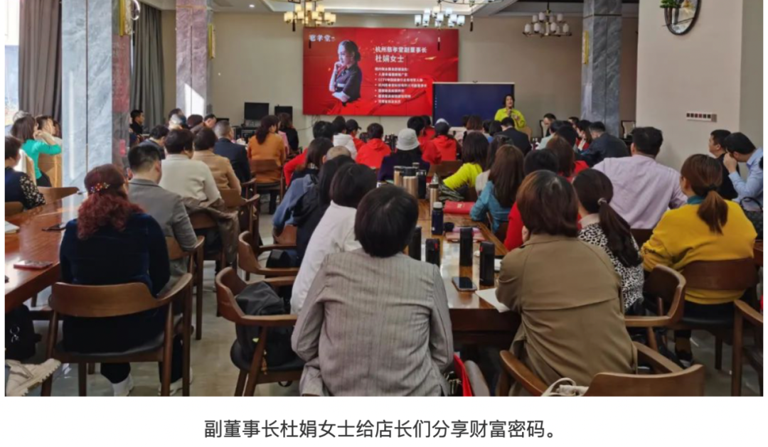 在2022年3月8日慈孝堂官网刊发的《公司动态 | 慈孝堂2022第三期店长研修会圆满落幕》文章中,杜娟的职务升格为慈孝堂公司副董事长。