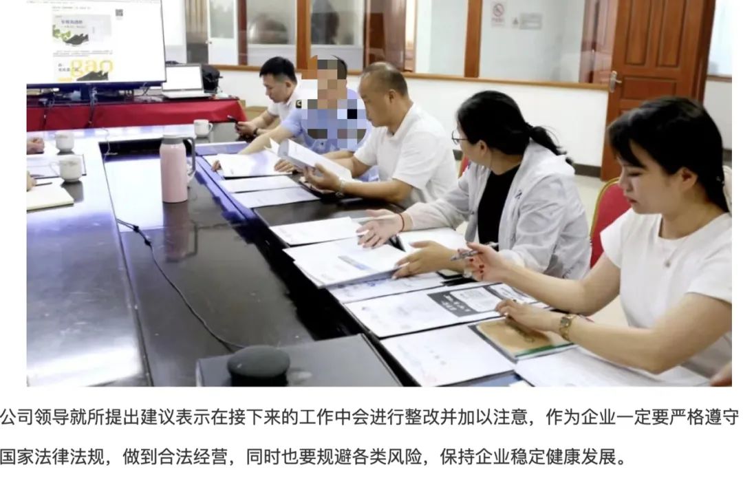 国家企业信用信息公示系统截图 国家企业信用信息公示系统则显示,早在2018年10月,杜娟就已成为慈孝堂公司监事。 更让人难以理解的是,不光关键人物的核心信息隐瞒,慈孝堂甚至对市场监管部门的“指导”信息,也公然炮制假材料。 在慈孝堂提供给本刊的函件中,慈孝堂称,7月5日,慈孝堂公司“主动邀请”了当地市场监管部门人员,对公司产品宣传、说明书以及各类宣传进行检查和指导,同时帮助公司做好相关政策的宣传和员工教育培训工作。为表明这一做法的真实性,慈孝堂还专门在函件中配上了图片。
