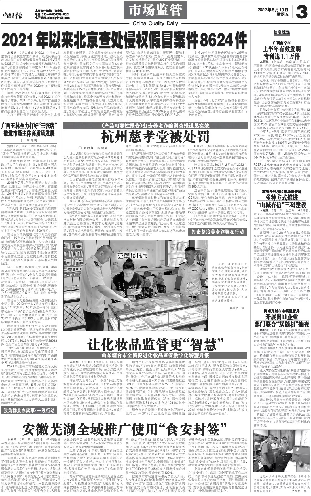 今日(8月19日),《中国质量报》在重要版面的“打击整治养老诈骗在行动”专栏,刊发题目为“《产品可靠性报告》打击养老诈骗调查报道见实效 杭州慈孝堂被处罚”文章,肯定了《产品可靠性报告》杂志社在全国打击整治养老诈骗专项行动启动以来,贯彻市场监管总局打击整治养老诈骗专项行动具体安排,开展打击整治养老诈骗深入现场暗访调查报道活动所取得的实效。文章指出,市场监管部门对该企业立案调查,是基于《产品可靠性报告》杂志的暗访报道。