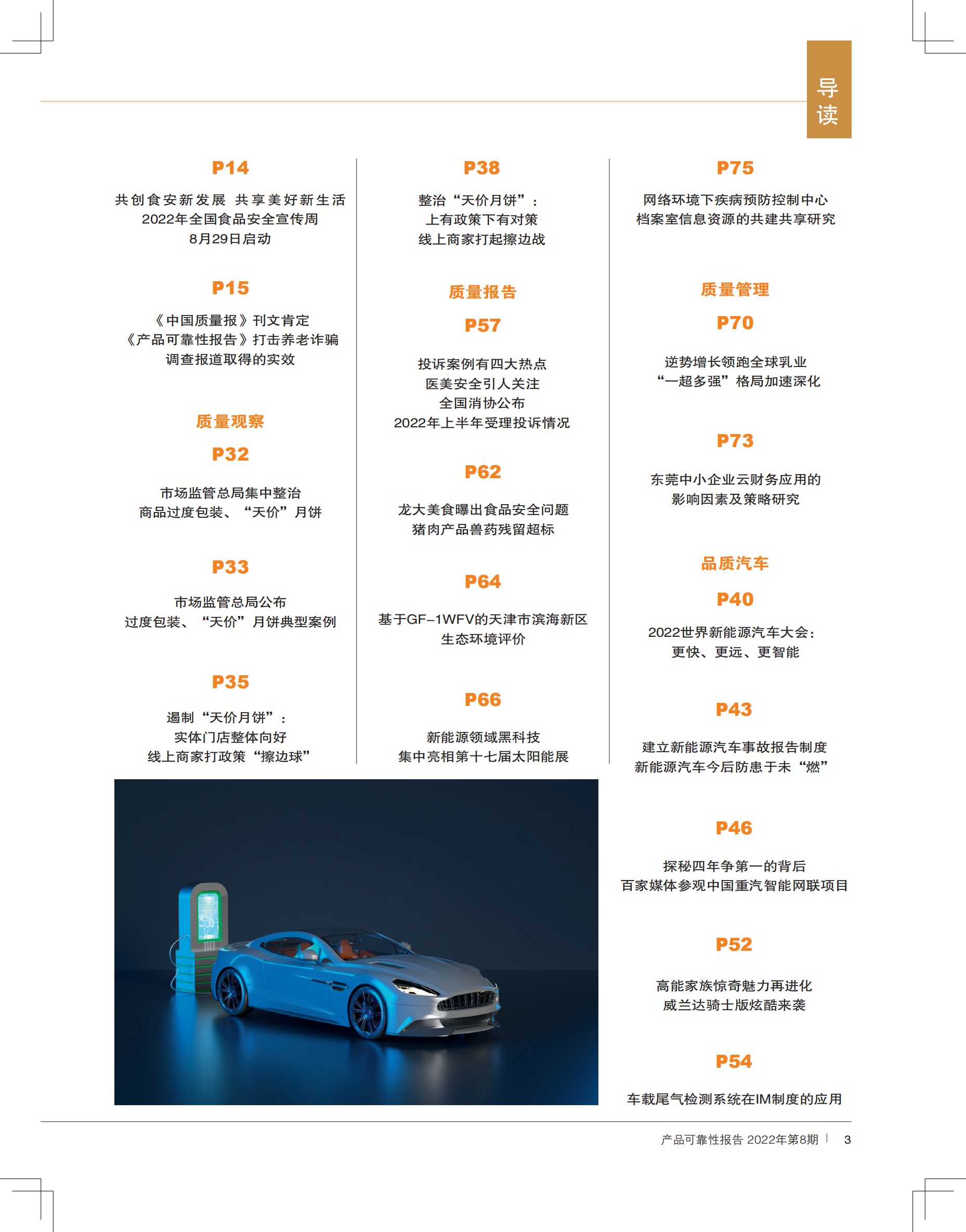 本期热点:直播带货再成焦点 乱象整治仍是重点;市场监管总局等二十一个部门共同部署开展全国“质量月”活动;共创食安新发展 共享美好新生活 2022全国食品安全宣传周启动;建立新能源汽车事故报告制度 新能源汽车今后防患于未“燃”;遏制“天价月饼”:实体门店整体向好 线上商家打政策“擦边球”;文具产品放弃实用性追求个性时尚质量问题老生常谈。
