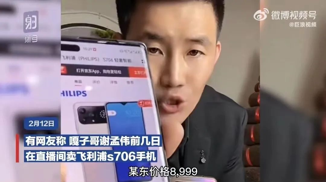 随后,有网友指出,这款手机价格实际上根本不到1999元。12日,媒体在嘎子哥所提平台搜索,并未找到该款手机,在另一平台找到该款手机,商家表示该款手机1880元就能卖。 另据Tech星球,这款手机是飞利浦S706,6.8寸水滴屏,联发科MT6769处理器,60Hz刷新率,前置800w,后置1600w主摄+1200w广角+30W感光三摄,人脸和指纹识别,5000mAh+10W快充组合。