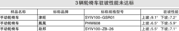 记者 万晓东 李建 为给消费者提供公正、客观的手动轮椅车商品信息,督促经营者提高商品质量,北京市、天津市、河北省消协组织对手动轮椅车商品进行了比较试验,并于日前公布了结果。 比较试验结果显示,8辆轮椅车滑行偏移量超出国家标准要求的限值,3辆车驻坡性能低于国家标准要求,11辆车静态强度低于国家标准要求,6辆车冲击强度低于国家标准要求,20辆车文件资料、标识和包装的明示内容不齐全,20辆车均通过了手闸制动系统受力试验。 津旺等8辆轮椅车滑行偏移量超标 本次比较试验样品模拟普通消费者实际消费程序随机购买,通过多个实体店及网上购物商城,共购买了20辆手动轮椅车样品。 从实体店购买的有标称生产厂家湖州康德医疗器械有限公司、品牌SO?MA/康扬、规格型号SM-250.5的手动轮椅车;标称生产厂家天津市长宁轮椅车制造有限公司、品牌长宁、规格型号SYIV100-CN-001的轮椅车;标称生产厂家天津市天兴轮椅进出口有限公司、品牌友鹏、规格型号SYIV100TX-A3的手动轮椅车;标称生产厂家中进医疗器材泰州有限公司、品牌中泰、规格型号SYIV100-ZTA168的手动轮椅车;标称生产厂家佛山市南海区康健泰康复器材有限公司、品牌可孚、规格型号SYIV100-KJT106的手动轮椅车;标称生产厂家佛山市东方医疗设备厂有限公司、品牌佛山轮椅、规格型号FS864L的手动轮椅车等8辆样品。 从网上购物商城购买的有标称生产厂家天津市助邦医疗器械有限公司、品牌助邦、规格型号SYIV100ZB-26的手动轮椅车;标称生产厂家天津艺烨医疗器械有限公司、品牌津旺、规格型号SYIV100-GSR01的手动轮椅车;标称生产厂家天津市美康医疗器械有限公司、品牌恒倍舒、规格型号SYIV90-MK-08的手动轮椅车;标称生产厂家衡水斯瑞医疗器械有限公司、品牌衡互邦、规格型号无标识的手动轮椅车;标称生产厂家江苏鸿凯医疗科技有限公司、品牌鳯凰、规格型号PHW608的手动轮椅车;标称生产厂家广东凯洋医疗科技集团有限公司、品牌凯洋、规格型号KY608L的手动轮椅车;标称生产厂家中山市福仕得健身器材有限公司、品牌雅德、规格型号SYIV100-2000W的手动轮椅车;标称生产厂家丹阳真辉康复设备有限公司、品牌ichigo ichie、规格型号SY?IV100MK I 50-4243的手动轮椅车;标称生产厂家佛山市顺德区安爱工业有限公司、品牌A&I、规格型号J171801的手动轮椅车等12辆样品。 本次比较试验共设定6个检测项目:滑行偏移量、驻坡性能、静态强度、冲击强度、文件资料标识和包装、制动系统受力试验(手闸)。 滑行偏移量是手动轮椅车的重要检测项目。国家标准要求手动四轮轮椅车滑行偏移量不应超过350mm。滑行偏移量越大,轮椅车在行进时越容易发生偏移,使用者在使用过程中会有左右手用力不一的情况,造成使用上的不适。同时轮椅车行走偏移过大也会造成安全隐患,使轮椅车行进时不自主偏离原定行驶方向而发生危险。该项目测试结果显示,20辆轮椅车样品中,标称凯洋、中泰、佛山轮椅、ichigo ichie、A&I、衡互邦、助邦、津旺品牌等8辆轮椅车滑行偏移量超过350mm。其中,除标称凯洋品牌的样品外,其余7辆轮椅车的滑行偏移严重,未能滑行到测试坡道的终点即滑出测试坡道。 鳯凰、助邦、津旺3辆轮椅车驻坡性能不佳 驻坡性能是考察轮椅车在坡面停留的能力。驻坡性能角度越小,说明轮椅车在坡道上的停车驻留能力越差,使轮椅车需要在坡道上停车时制动效果不佳,造成使用安全隐患。 标准规定轮椅车在正面下坡和正面上坡两个方向上,开始移动时的角度不能小于8°。该项目测试结果显示,20辆轮椅车中,标称津旺品牌的样品在下坡方向上开始移动的角度低于8°;标称鳯凰、助邦品牌的样品在上坡和下坡方向上开始移动的角度均低于8°。 长宁、友鹏等11辆轮椅车静态强度未通过 静态强度项目考核的是轮椅车在使用时各受力部位的机械强度。标准要求在各受力部位施加一定的载荷后,不能出现断裂、脱落、功能失效、无法使用等现象。 该项目测试结果显示,标称SO?MA/康扬、可孚、凯洋、A&I、长宁、友鹏、津旺、恒倍舒、衡互邦、助邦、雅德品牌等11辆轮椅车样品的把手套均出现脱落或位移,导致功能失效。这11辆车中,8辆车的脚托向下受力出现断裂或严重变形,不能正常使用。 友鹏、可孚等6辆轮椅车冲击强度未通过 冲击强度是考核轮椅车在使用时,可能受到冲击或撞击部位的机械强度。冲击强度试验包括靠背抗冲击强度、手圈抗冲击强度、小脚轮抗冲击强度、脚托抗冲击强度、整车冲击、椅座冲击6个子项目。 本次比较试验中,标称可孚、凯洋、恒倍舒、衡互邦、长宁、友鹏品牌等6辆轮椅车样品的手圈在冲击后出现断裂。当轮椅车手圈受到外力冲击而损坏时,轮椅车会失去行进的功能。试验中,标称友鹏品牌的1辆车座椅受冲击后出现椅座折叠机构连接螺丝脱开的现象。 衡互邦、可孚等13辆轮椅车标识内容缺失 文件资料、标识和包装是购买者了解轮椅车基本参数、性能、使用方法和使用注意事项的最直接途径。该项目明示内容齐全是使用者正确、安全使用轮椅车的基本保障。 本次比较试验结果显示,20辆轮椅车样品的文件资料、标识和包装均存在不同程度的内容缺失。其中,中泰、达洋、长宁等13辆轮椅车的指标说明内容缺失,衡互邦、可孚、互邦等13辆轮椅车的标识内容缺失,20辆轮椅车的包