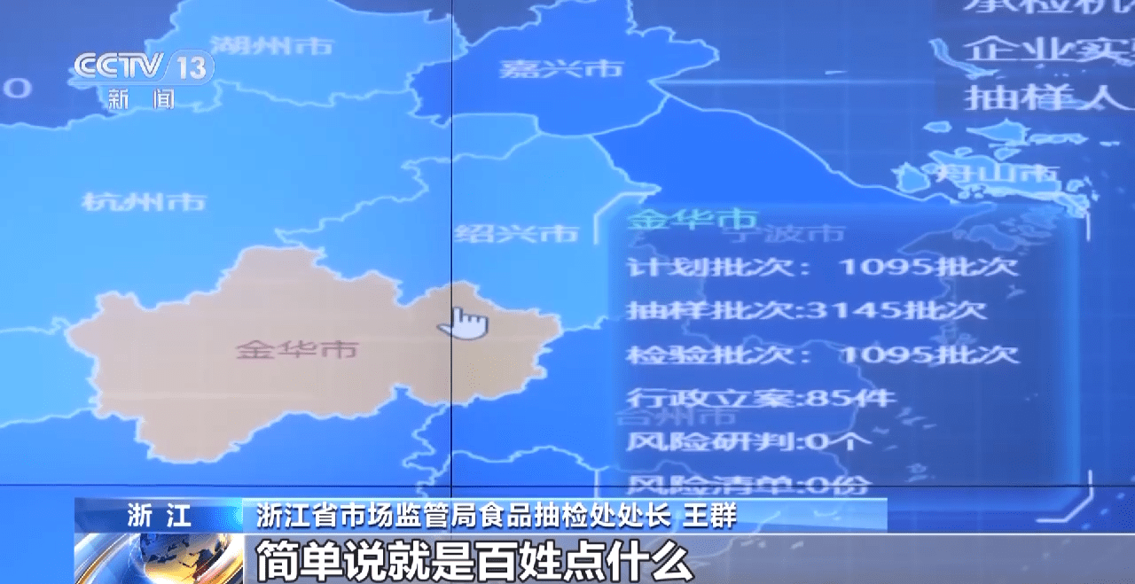 浙江省市场监管局食品抽检处处长 王群:简单地说就是百姓点什么,我们就检什么,监管什么。今年一季度,累计征集群众意见建议两万余条,使用扫一扫功能查询食品信息达30万次,你点我检1.1万次,所有检查结果都100%反馈给了消费者。