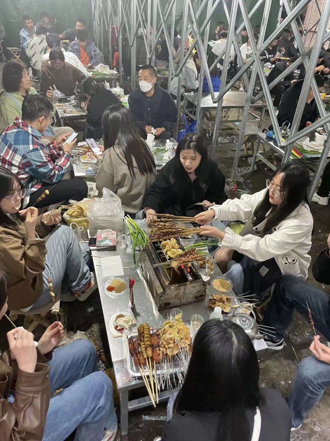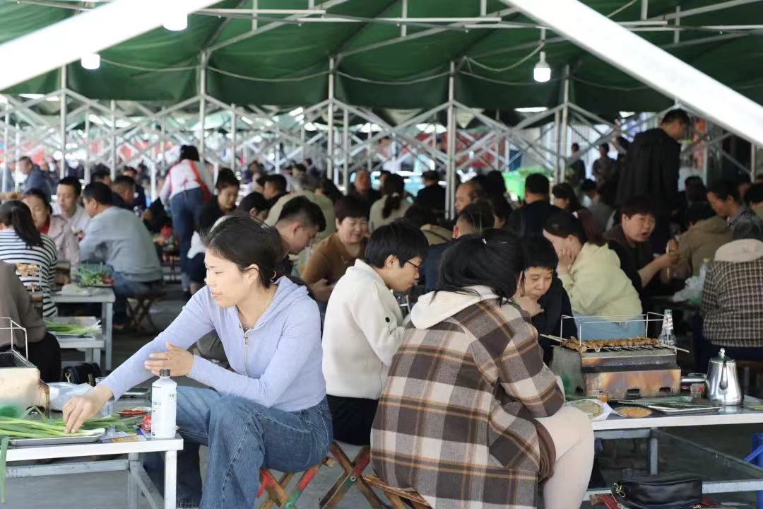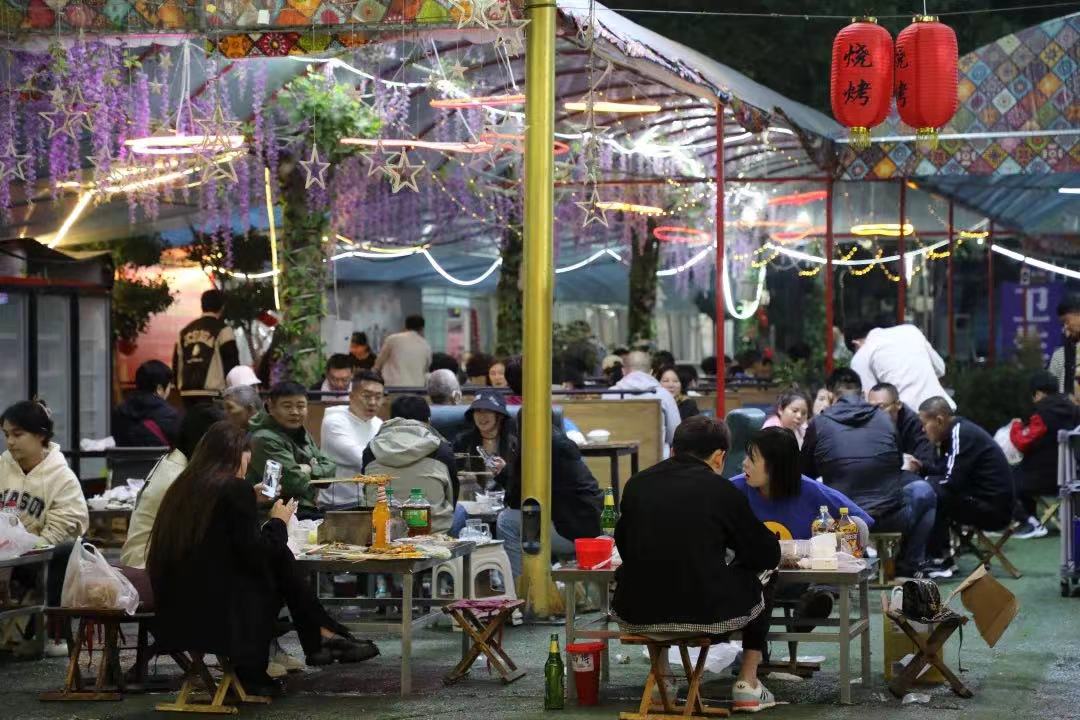 “撸串”成为淄博的特色场景。傍晚时分,位于淄博张店区中心路附近的“大院烧烤”,座无虚席。一群来自济南的大学生告诉记者,受网络“种草”的影响,他们宿舍的大部分同学都来淄博“打过卡”。