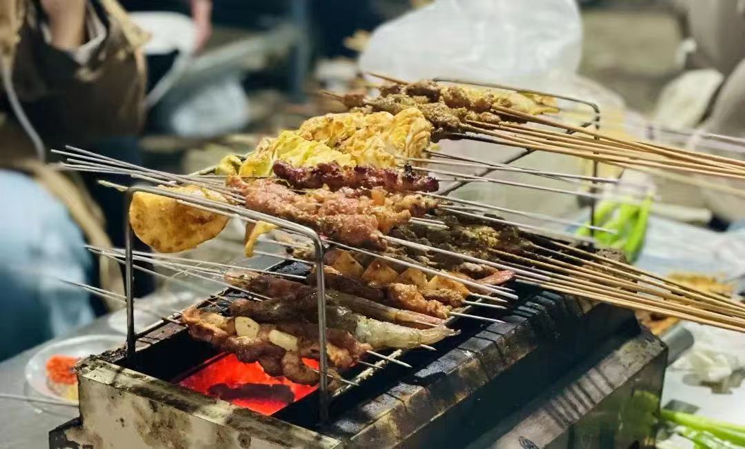 一桌一炉一卷饼,小串小葱小蘸料。食材新鲜,风味独特,分量十足,荤素应有尽有。在食客心中,最在意的还是淄博烧烤的美味与实惠——肉串分1元、1.5元、2元、2.5元、3元不等,小饼每包3至4元,小葱、小酱加蘸料3至5元,人均消费四五十元就能吃饱吃好。