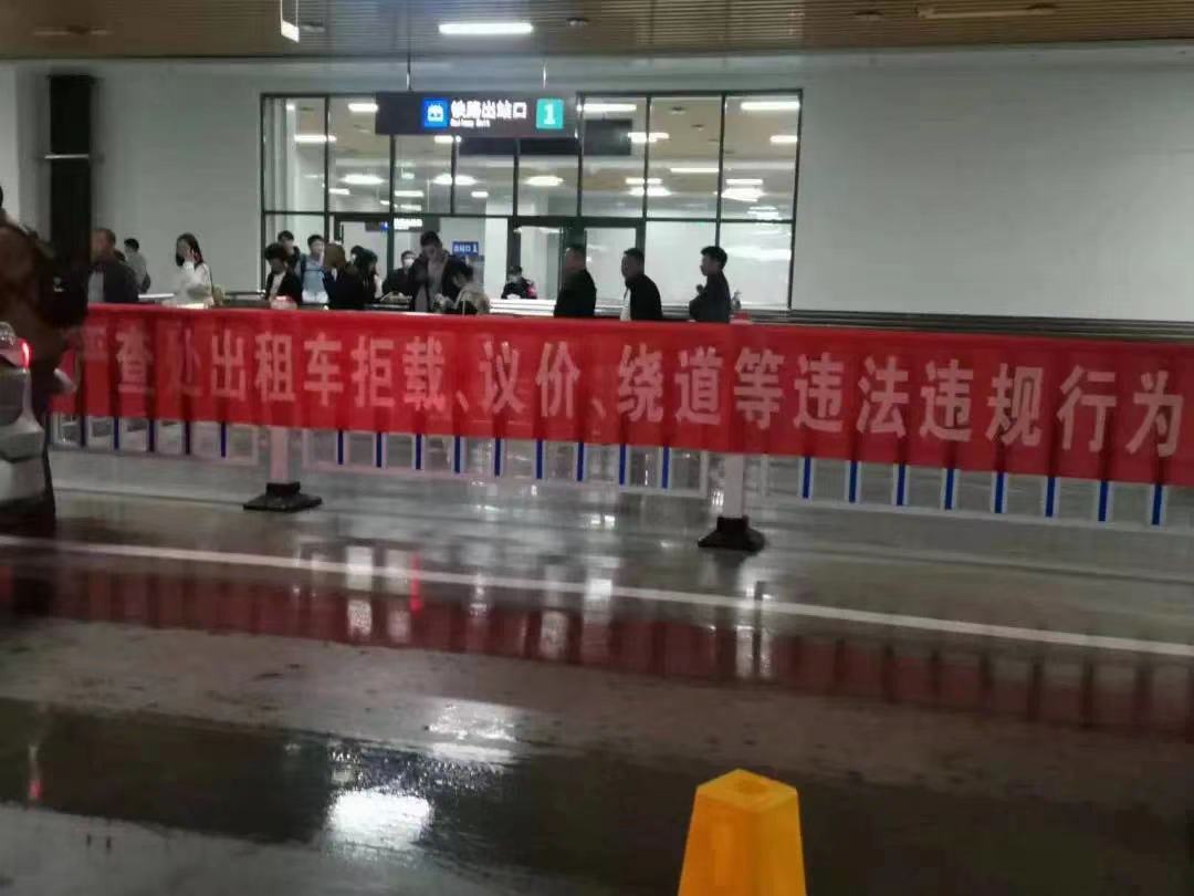 从淄博北站出站,一直到公交车、出租车、停车场,都有志愿者在引导游客。