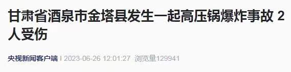 据央视新闻消息,6月26日上午甘肃省酒泉市金塔县解放路一家卤肉店发生高压锅爆炸事故。