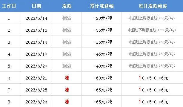国内油价第13轮调整 将在明日(6月28日)24时开启 6月26日 本轮油价计价统计周期第8个工作日 当前参考原油变化率为1.50% 预计汽柴油累计上调65元/吨 折算为每升油价上调0.05-0.06元 本轮油价 将大几率上调或搁浅 上调的话 加满一箱油或要多花3元左右