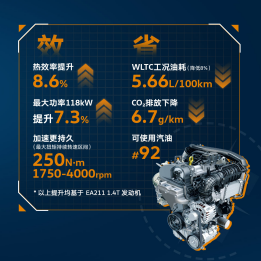 深入布局,上汽大众节能减排的“长期主义” 相较于“头痛医头,脚痛医脚”,上汽大众的转型是自上而下的。早在2016年,在很多车企对新能源还处在观望揣摩阶段,上汽大众便开始筹谋新能源布局,提出了“共创2025战略”,即“2021-2025年在继续保持燃油车市场领先地位的基础上,上汽大众将推出基于MEB平台的多款纯电动车型”。由此,上汽大众成为最早拉开电动化转型帷幕的合资车企。在“共创2025战略”之下,以“长期主义”开始稳扎稳打地一步步推进其节能减排进程。 首先,燃油车这个“基本盘”市场,上汽大众是不会轻视的。为了巩固燃油车市场的优势,其产品朝着“小型化、低排量、低油耗”的方向优化,推出的全新一代1.5T EVO2发动机,通过应用米勒循环、全新VTG可变截面涡轮增压器、350bar高压燃油喷射系统,来打造小排量“黄金动力”,从结果看,新技术让最大功率提升7.3%,油耗下降8.6%,二氧化碳排放下降了6.7g/km,效果显著。