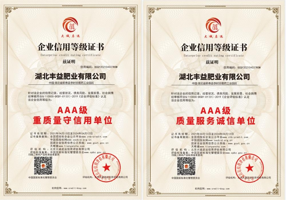 立业 12年来,丰益肥业成绩斐然、荣誉累累,先后多次被省市相关部门评为“质量信得过”企业、“农业产业化龙头”企业。目前,企业拥有 26800㎡生产研发基地 1座;20余人组成的技术研发团队 1个;研发专用配方肥 30多种;获得专利 40余项;年生成能力高达 30万吨;具备测土配方资质;获得“高新技术企业认证”。