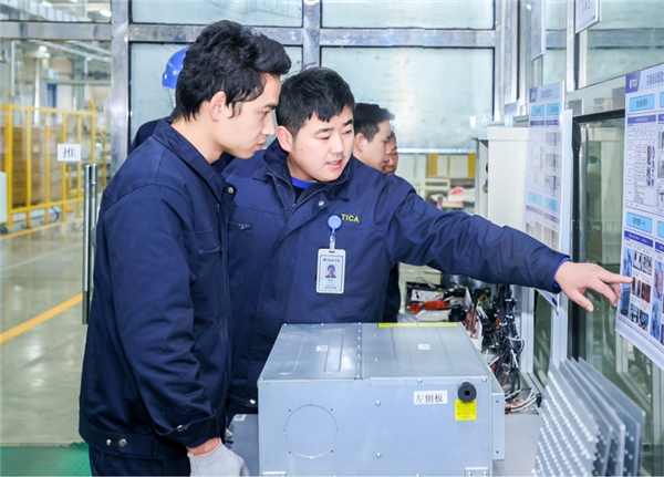 在南京天加的一个生产车间里,中央空调设备逐渐成形,每一个细节都经受着严格的质检。这个场景下,工程师们对待产品的专业和细致仿佛在打磨一件精致的手工艺品。