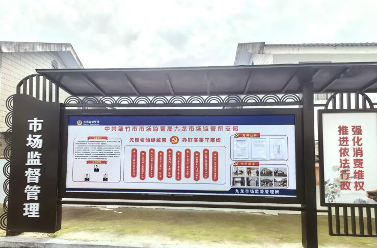 经过多方研究,将有着千年历史深受巴蜀人民喜欢的绵竹年画,作为载体融入日常宣传普及教育中。让群众从“被动了解监管办法”向“主动学习市场规章”转变。同时,开展线上铺开式宣传。精心创作“年画娃娃”系列表情包、H5等新媒体产品,将市场监管部门的服务宗旨、监管理念以系统化、本土化的视觉符号传递给社会公众,以创新的方式塑造了市场监管形象的同时,为建设统一大市场做出具有绵竹特色的贡献。 据悉,目前,绵竹市局及下辖九龙市场监管所分别被确定为全省首批“两化”建设“示范局”“示范所”创建单位,九龙所作为全国五星所评定候选单位已被推荐到市场监管总局。 更放心! 夯实做强基础 携手统筹推进 “我们九龙市场监督管理所位于绵竹市九龙镇,监管辖区为九龙镇、麓棠镇、广济镇。共有市场主体4717户,其中,企业720户,农村专业合作社263户,个体工商户3734户。如此众多的个体工商户以及流动摊点,不仅连接着摊贩的生计,是稳定和扩大就业的重要支撑,还关乎民众生活的获得感。”九龙所所长刘思言对辖区情况了如指掌。 在该所的办公区,记者注意到,所有工作人员的信息全部公开,职责分工醒目,服务内容一目了然,工作计划、月度工作重点清晰的梳理在墙上,所里每一个人都要对标打卡,按时推进,做到对标督导,提升工作质效。
