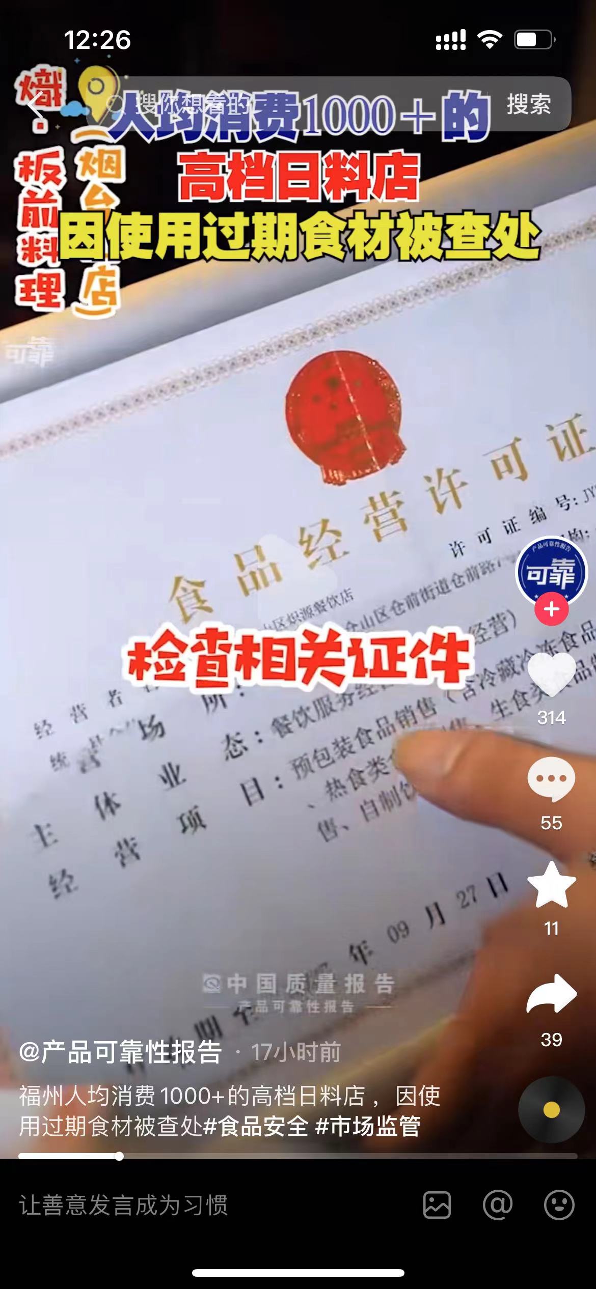 近日,福州市场监督管理局对仓山区日料店水产店卫生以及后厨经营情况进行突击检查。 执法人员随机进入一家名叫熾(chi).板前料理的日式餐厅 情况会怎么样呢? 让我们一起感受一下吧。