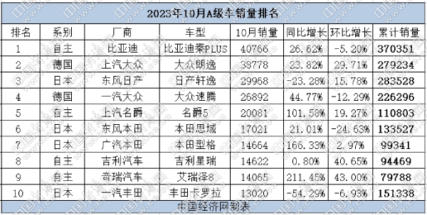 10月A级车:自主捍卫主场,合资发力纯电