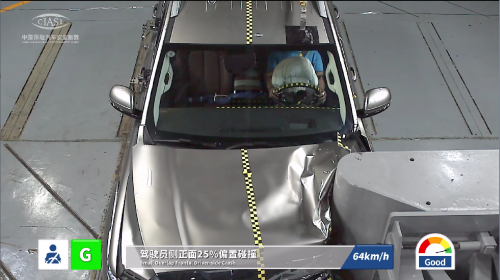 正面25%偏置碰撞是一种死伤率很高的事故形态,被誉为C-IASI几大测试中最严苛考核项目。山海炮凭借硬核实力获得Good评级,其中结构与乘员均为Good级别,优异的成绩主要得益于车身和车架双重传力结构,测试中上A柱几乎无变形,乘员舱框架保持完整;安全气囊和侧气帘及时点爆并顺利展开,为乘员提供稳定的支撑和全方位的保护。