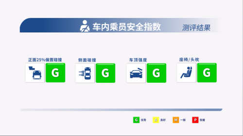 车内乘员安全G级:为乘员提供全方位保护 众所周知,当车辆发生碰撞事故时,汽车安全防护与车内人员的生存率息息相关。针对车内乘员保护相关测试,中保研碰撞C-IASI指数测评包含四项测试,分别为:25%小重叠碰撞、侧面碰撞、车顶强度极限测试、座椅/头枕测试,山海炮在四项细分测试中均获得G(优秀)评级。