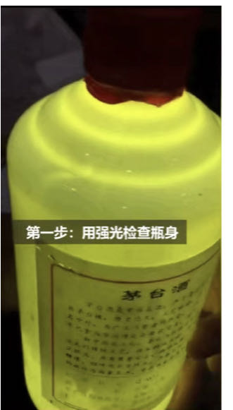● 在光线充足的灯下仔细观察瓶身表面,重点观察瓶盖附近、天地盖底座、酒标后面、瓶底字体图案凹陷处等等,边观察边用手摸瓶体有无凹凸点。 ● 用强光手电灯从瓶身前后标之间空白处照射瓶体,尤其注重前后标的背面有无小黑点,要注意区分瓶体瑕疵点和黑点的区别。钻孔破坏了瓶身位置原有的纹理,打孔后无论填充什么材质,用强光照射瓶身,瓶身都会出现小黑点。 对于茅台来说,酒瓶特别要注意检查瓶底麦穗标和字母中间位置。因为瓶底花纹多,钻孔位置较隐蔽,不易被人发现。 温馨提醒:买酒“四注意” 认清生产商。消费者在购买酒水前,一定要注意观察包装,注意认清生产商、生产地址。 2. “特供”“专供”别轻信。对于市面上打着“特供”“专供”旗号的酒水,一定要注意鉴别,以免上当受骗。 3. 价格太低不可信。选购酒品时,如果发现价格特别便宜,就要提高警惕,切莫贪小失大。 4. 正规渠道购买。选择正规的实体店、电商平台购买酒水,若发现假冒伪劣线索,及时向相关部门举报。 |
