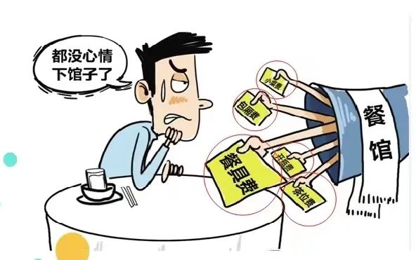 基本情况: 消费者朱女士来电反映,其到某品牌金店将先前购买的一款重16.5克的黄金手链进行置换,随后在店员的推荐下选购了一款款式新颖的“一口价”工艺黄金首饰。回家以后,朱女士看清标牌发现该款首饰净重不到13克,比之前的克数少了很多。朱女士感觉自己上当了,表示购买时销售员没有告知其“一口价”黄金和“克价”黄金的区别。 理性消费SPRING FESTIVAL 案例评析: 春节期间,黄金饰品消费是热门。因“一口价”与“克价”黄金饰品分不清而产生的投诉较多。消费者难以接受“真金”经过兑换后变成“工艺品”,支付的价格越来越高,黄金克重却越来越小。其实,“一口价”黄金,在做工上会更加精致,主要卖点就是“精致”,所以按照克重计算的话,就显得单价很贵。因此,广大消费者应理性购买黄金珠宝饰品,想好自己的真正需求。在购买或调换黄金饰品时,应充分了解商家的调换规则,最好是与商家以书面方式进行约定,或者对当时的调换规则进行拍照留存。上述案例经过市场监管部门调解,朱女士退还了该“一口价”金饰,重新按照调换规则挑选了一个“克价”金饰。 案例二 “必选菜品”要注意 谨防“账单刺客” 基本情况: 有消费者匿名反映在某餐饮店消费过程中,出现“餐具消毒费”的收费情况,商家在消费过程中未尽到告知的责任和提供免费的餐具。消费者提供的该餐饮店结账单上有“品项:餐具消毒费 数量2盒 小计4 优惠价4”的消费情况。