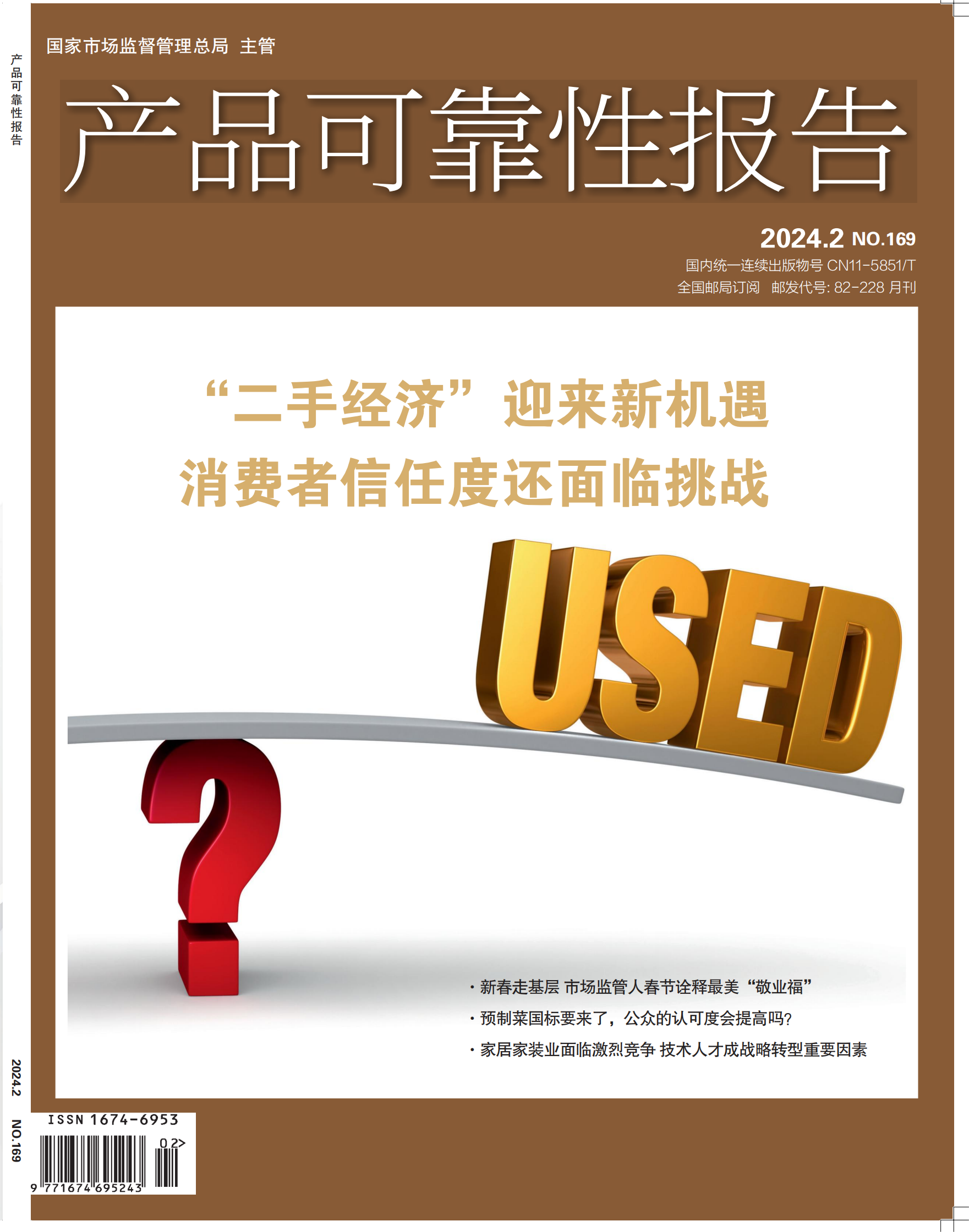 ![]() 本期热点:新春走基层系列报道;“二手经济”迎来新机遇 消费者信任度还面临挑战;家居家装业面临激烈竞争 技术人才成战略转型重要因素;揭秘高价“特供酒”背后的黑色产业链;预制菜国标要来了,公众的认可度会提高吗? ![]() ![]() 《产品可靠性报告》由国家市场监督管理总局主管、中国质量报刊社主办,国内外公开发行,基于大数据,以质量管理、质量技术、质量安全为视点,以数据型、研究型报告为主的科技月刊。 《产品可靠性报告》在杂志的基础上,形成官方网站、微信公众号、抖音号等的融媒体阵营。 “产品可靠性”概念狭义上是产品在使用期间没有发生故障的性质,广义上是指使用者对产品的满意程度或对企业的信赖程度。 《产品可靠性报告》关注产品用户体验和品牌美誉度,关注产品耐用性和故障率、产品缺陷,把产品的安全性、稳定性和可靠性放在共同的层面下,用数据说话,以客观的眼光进行观察,宗旨是透视缺陷产品,揭秘质量差异。 《产品可靠性报告》重点关注汽车、电器、食品、化妆品、IT电子、房屋家居、数字科技、健康、直播电商等领域。 主要内容: 1、解读国家、总局及地方与质量、安全及可靠性相关的政策法规; 2、分析、测评、报告产品的质量、安全及可靠性; 3、开展满意度调查,发出用户的声音,关注消费体验; 4、推荐质量好、安全、可靠的产品并介绍其生产制造商的先进技术,交流管理经验; 5、关注有质量缺陷的产品以及这些产品的生产制造商,促进产品质量缺陷的解决、生产制造商质量管理及技术的提高; 6、可靠性标准的推进和讨论、可靠性技术的传播和发展、可靠性理论的灌输和争鸣。 《产品可靠性报告》风格权威、严肃但不失亲民。内容忌深奥晦涩,行文力求通俗易懂,用大众能读的懂、看的明白的表达方式阐述专业的问题。 欢迎订阅全新内容的 《产品可靠性报告》杂志 月订价:35元/册+12元快递费 年订价12期:420元+144元快递费=564元 联系方式: 订阅电话:010-84641072 联系电话:010-84640532 联系地址:北京市朝阳区育慧南路3号 邮编:100029 |