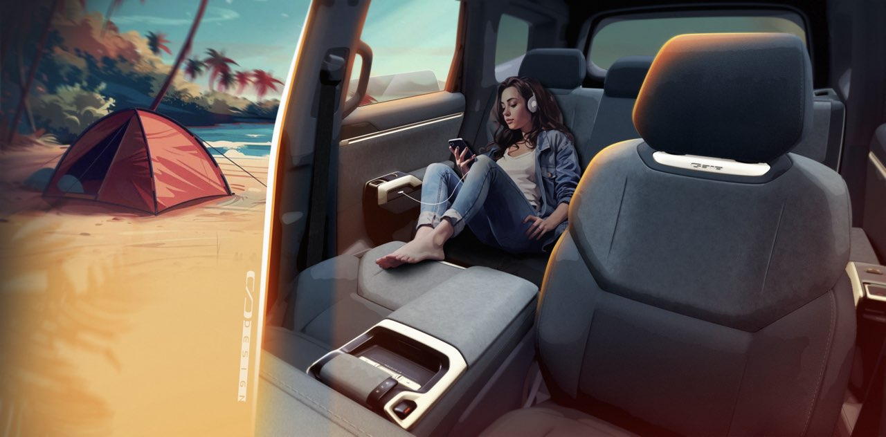 2017年路虎发现5上市采用了去大梁设计,更加强调了越野舒适性,在保持越野能力的同时又保证了舒适性。深蓝汽车G318也采用了去大梁设计,不仅保障车内空间,其用承载式车身做45000Nm/deg车身扭转刚度,高强度七环网车身结构、核心承力零件99%高强钢,2880mm超长轴距,车长得房率61%,车高得房率68%,超过市面上的传统硬派。 在户外露营和长途穿越过程中,深蓝汽车G318全能性、空间性更是得到全面施展。采用全方位外拓空间使得载重空间得到大大的加强,二楼的小洋房更是达到300kg静态承重。而深蓝汽车G318的后向1.6T资质拖挂、行业唯一在售可行驶开启探照灯、户外6千瓦外放电功率等功能在户外过程中也是大放异彩。