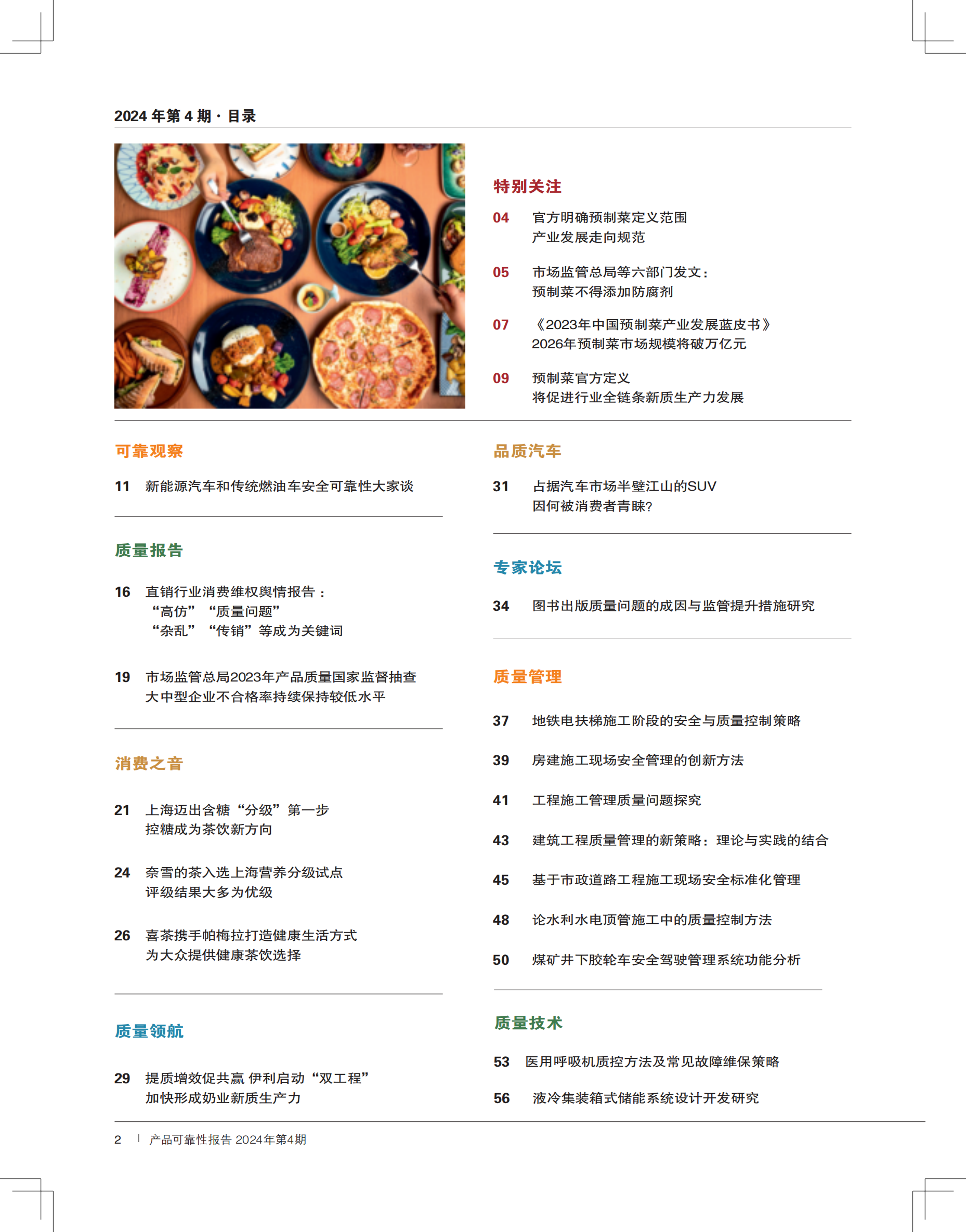 本期热点:【专题】官方明确预制菜定义范围 产业发展走向规范;新能源汽车和传统燃油车安全可靠性大家谈;直销行业消费维权舆情报告 : “高仿”“质量问题” “杂乱”“传销”等成为关键词;市场监管总局2023年产品质量国家监督抽查 大中型企业不合格率持续保持较低水平;上海迈出含糖“分级”第一步 控糖成为茶饮新方向;京津沪渝市场监管部门 共建产品质量可靠性创新高地。