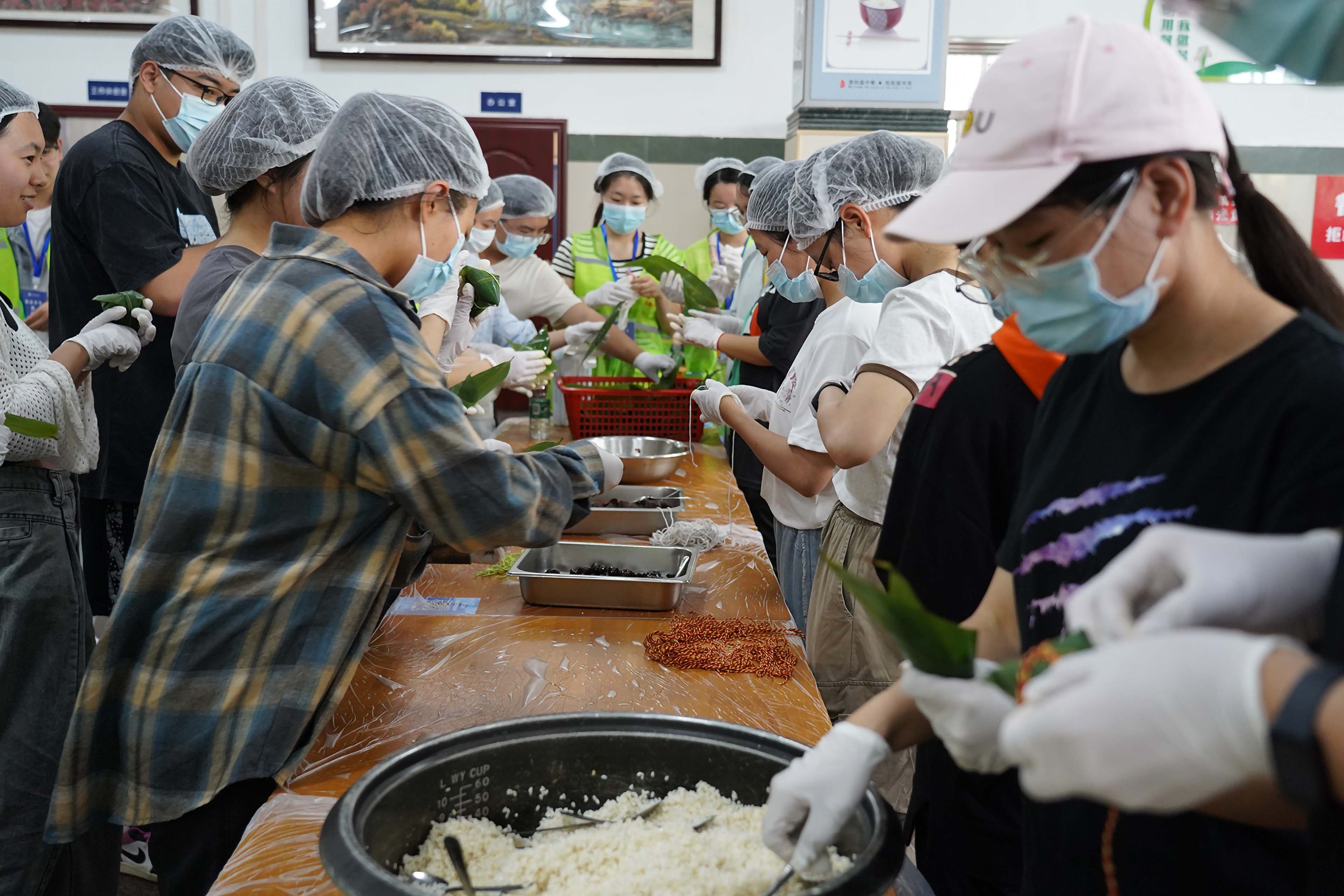 食品安全监督员、黄冈师范学院教育学院党委副书记徐丹介绍,学校后勤产业集团为提升服务质量,不断创新,每月举行食品安全现场调度会,并邀请2名食品安全监督员参加,参与食品安全督查。 此外,后勤产业集团还畅通师生服务投诉渠道,在南北校区的6个食堂、餐厅和学生宿舍楼前,设立服务站点和服务投诉二维码,让人人都变“食安卫士”。同时,丰富食堂菜品种类,增加了30%的菜品种类。 “粽”享端午,传承中华传统文化 食堂开放日当天,学校后勤产业集团还邀请了教师代表、留学生包粽子。 大家纷纷挽起袖子,投入包粽子中。翠绿的芦苇叶、白净的糯米及豆沙、猪肉、蔬菜等各种口味的馅品,在师生们的手中舞动。边包粽子,老师们还讲起了屈原和端午的故事,在“粽”享端午中,传承传统文化。