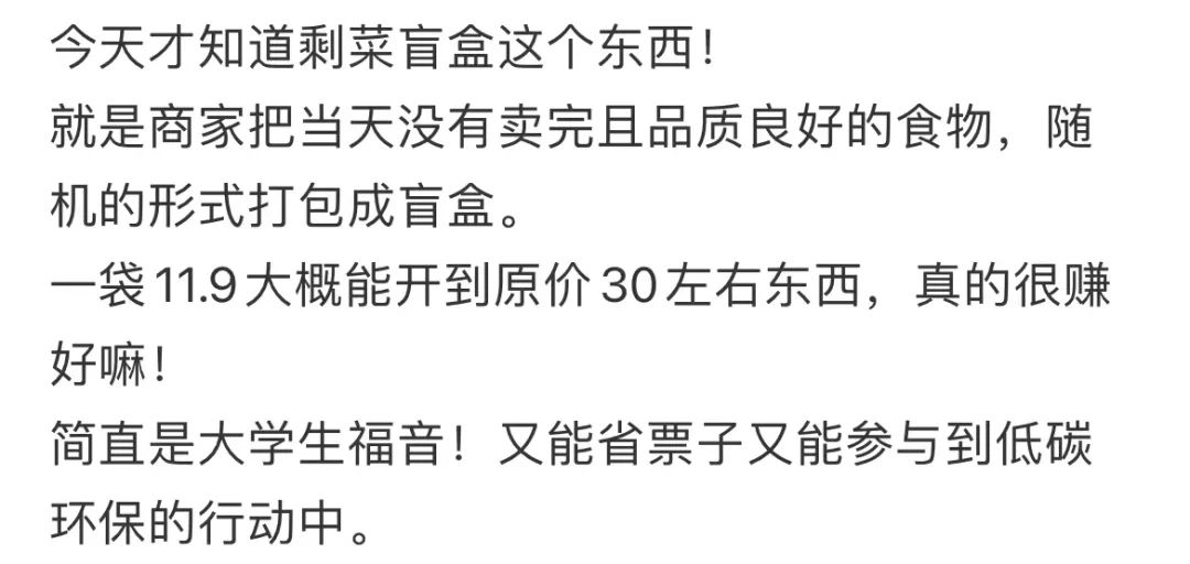 (内容摘自网友社交媒体) 为了吸引更多消费者 各种商业销售形式层出不穷 当下在食品消费领域就兴起了 一种“盲盒消费”的流行风潮 “剩菜盲盒”也因此进入了大众视野