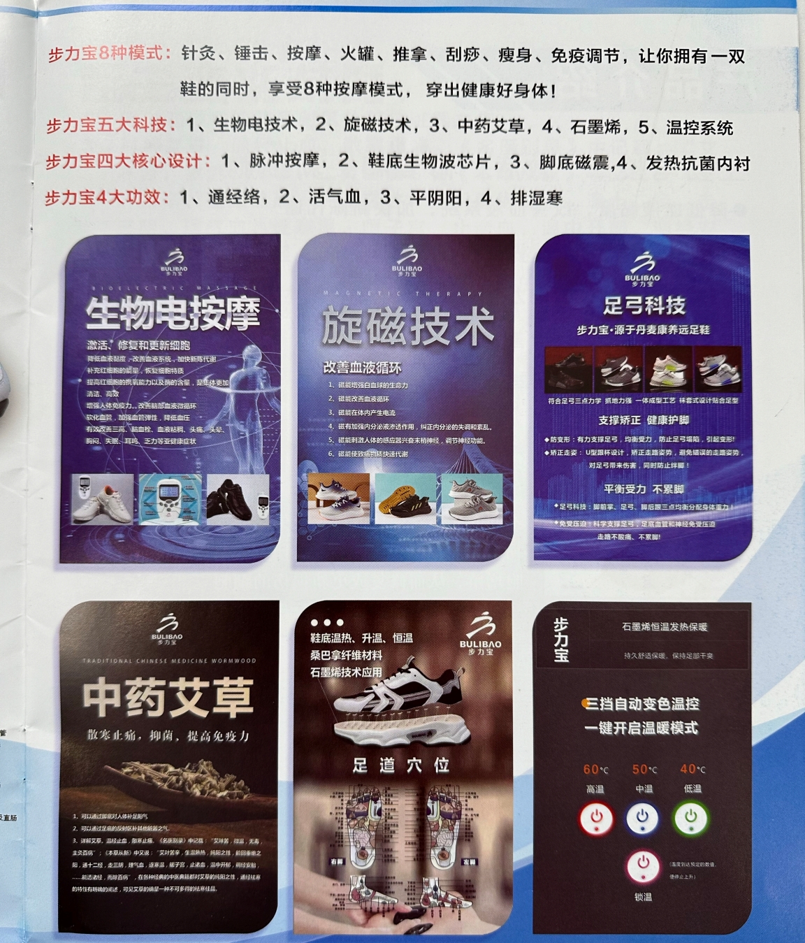 “普通鞋是代步工具,步力宝是康养医疗设备。”步力宝专卖店一位店主表示。 “它这个鞋只是做成鞋的样子,实际含有生物电。”该门店销售人员说,小孩生下来活蹦乱跳的,就是因为电量足,成年人慢慢电量就不足了,人体也需要充电。生物电在医学上就是通经活络,打通人体微循环的。脚底下最重要的涌泉穴,堵住了之后,人体的湿寒和毒素垃圾代谢不出去,就造成了高血压和糖尿病等。“穿上这个鞋之后,可以让人体的湿寒和毒素垃圾排出去”。 这位销售人员认为,从中医角度,步力宝解决了“毒”和“堵”的问题,从而解决了所有疾病的“病根”问题。 上述店主则举例表示,一位直肠癌患者,被医院下达了死亡通知书,穿上步力宝鞋一星期,就能自如下床了。还有一位糖尿病并发症患者,“脚底都流水了”,一个星期就“结伽”了。 “穿上这个鞋后,我的痔疮不知不觉就好了,”这位店主还以自身举例。 记者走访发现,多家步力宝专卖店的说辞都类似,均明示或暗示步力宝鞋“无病不医”。 步力宝鞋悬挂的吊牌显示,其制造商为福建省泉州健力鞋业公司,品名为运动休闲鞋,同样没有体现治疗保健等功能。记者拨打吊牌上健力鞋业公司电话,竟显示无此业务号码。 记者从市场监管部门获悉,目前,沈阳市步力宝家居生活馆、步力宝智能按摩鞋穿戴科技馆、步力宝智能穿戴科技馆等多家店铺因涉嫌虚假宣传已被立案调查。 曾因“涉嫌传销”被冻结资产? 记者查询还发现,步力宝宣称的五大科技,在河北吉力宝公司工商信息中并没有体现。
