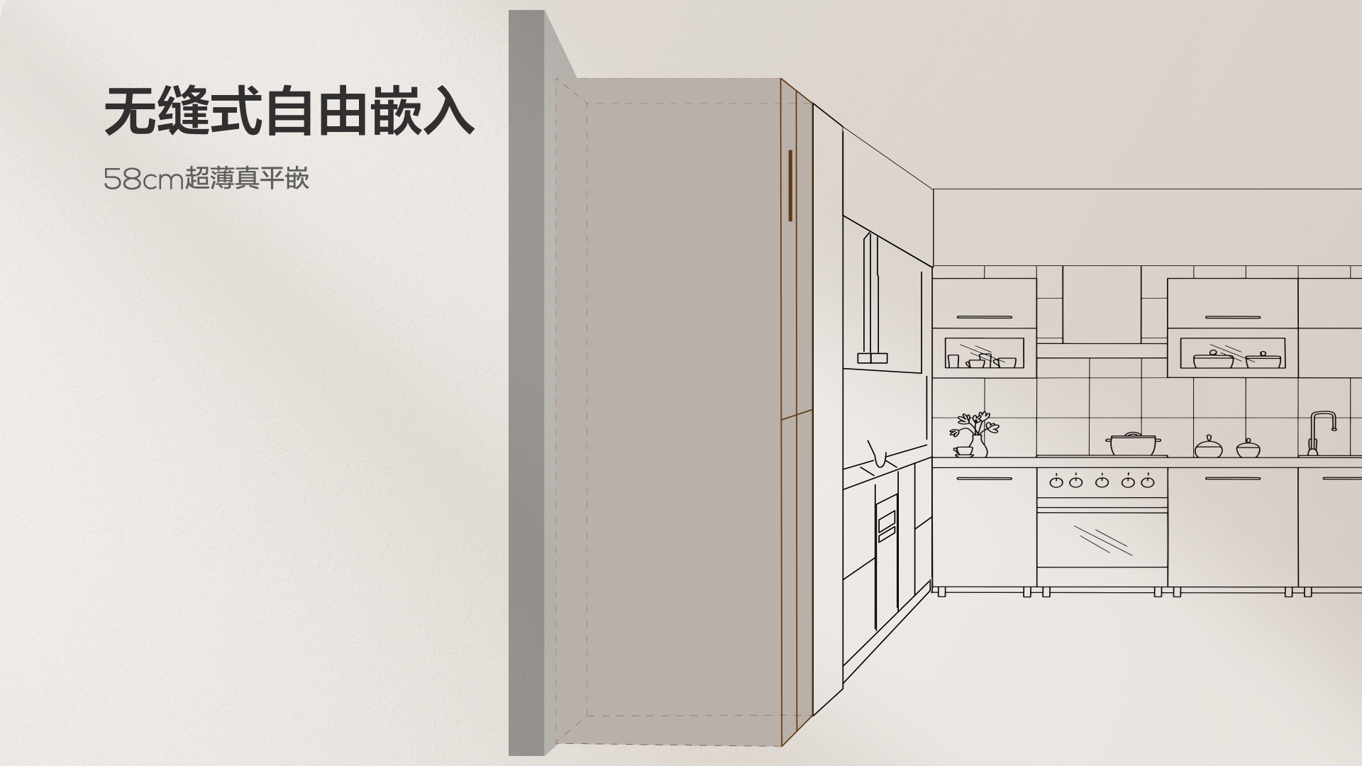 在双系统三循环和领先除菌净味黑科技的守护下,TCL T9 Pro在维持食物新鲜度的同时,让气味更有边界感,“鸡有鸡味,鱼有鱼味”,互不影响,避免串味的尴尬,守护美好的心情。 58cm超薄机身完美平嵌 缔造品质生活新体验 近年来,嵌入式冰箱渐渐成为消费主流,原因在于,嵌入式冰箱能够与橱柜融为一体,和整体家居风格更加协调,不仅提升家居品位,而且最大程度利用厨房空间。不过,双系统冰箱因为同时搭载两台蒸发器,对散热的要求远高于单系统冰箱,因此往往体积较大,难以嵌入60cm深度的国际标准橱柜。