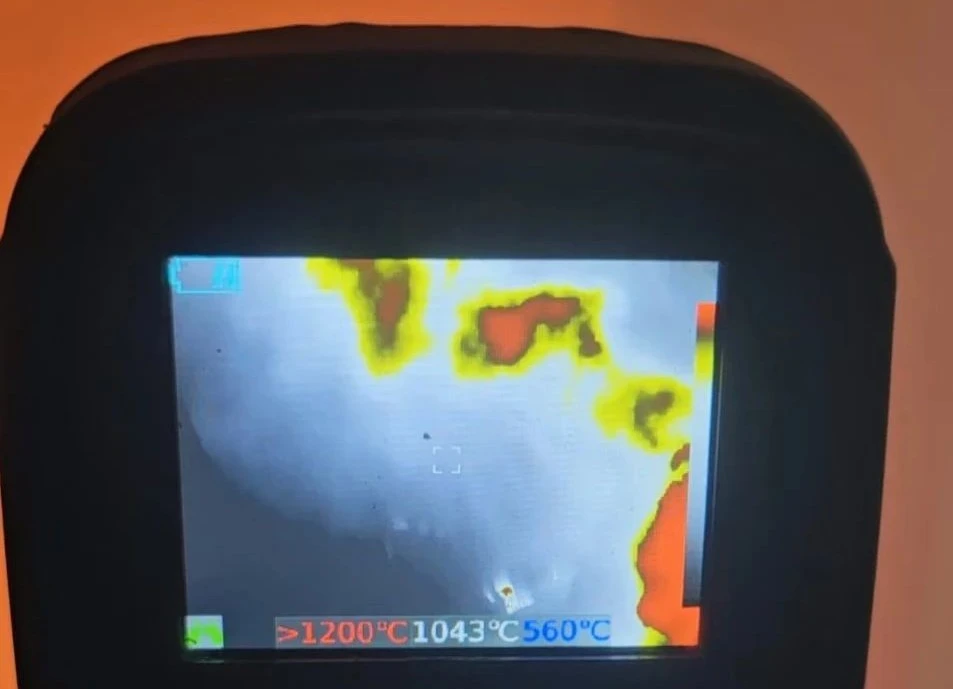 过程中消防人员用手持式热成像仪测试温度最高温度可达1043℃。