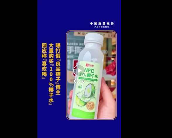良品铺子藕粉、酸辣粉被打假之后,“NFC100%椰子水”再起波澜
