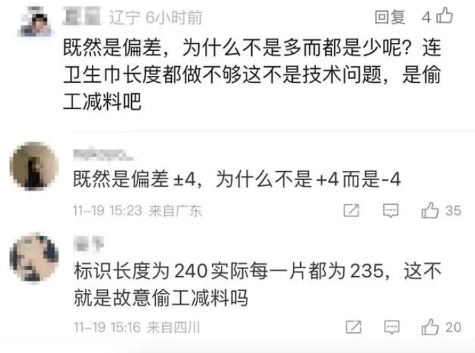 商家:卫生巾符合“偏差”范围!网友:为啥只短不长呢?