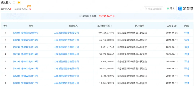 山东知名酒企山东扳倒井股份有限公司(下称“扳倒井股份”)债务危机终于浮出水面。 企查查信息显示,扳倒井股份持有的山东高青农村商业银行股份有限公司股权在11月20日遭到冻结,冻结权益数额为120.8007万元。 ![]() 值得注意的是,在此之前,扳倒井股份就已先后被中信银行淄博分行和交通银行淄博分行告上法庭,案由均是金融借款合同纠纷。而在更早的10月份,扳倒井股份更是接连八次成为被执行人,被执行总金额高达55,995.84 万元。 ![]() 上述法院公告也显示,除了扳倒井股份外,该公司的法定代表人赵纪文也一同成为被告。 接连被各大金融机构公开起诉追债也意味着扳倒井的债务问题公开浮出水面,扳倒井股份公司的流动性正面临困境。 不过,在此之前,扳倒井股份以及赵纪文其子赵泽函实际控制的国井控股集团的一系列股权变更就曾引发媒体关注。 企查查数据显示,9月6日,国井控股集团股权结构发生了重要变化,赵泽函、信春晖、张洪伟、郝景峰、张庆林、张峰国、白秀彬、孙艳波、张辉不再担任股东,这9个人持有的国井控股集团合计79.25%的股份被转让给了自然人王晨和王洋。