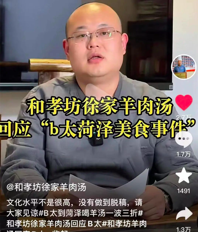 网红博主否认抹黑菏泽羊肉汤,涉事店家及当地市监局回应