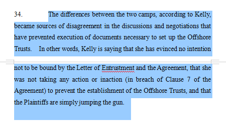 8月1日,香港高等法院就“宗家三兄妹”与娃哈哈现任董事长、宗庆后之女宗馥莉在香港的诉讼案件做出判决。 判决批准了三位原告申请的临时禁令,禁令要求被告宗馥莉和“建浩创投有限公司”在杭州中级人民法院及浙江高级人民法院相关诉讼有处理结果前,不得提取或抵押“建浩创投有限公司”在香港汇丰银行账户的资产。 根据判决书,建浩创投有限公司为本案的第二被告,自2024年2月2日起,宗馥莉成为该公司唯一股东及唯一董事。该公司在香港持有多种资产,其中存放于汇丰银行账户中的17.99亿美元资产,正是“宗家三兄妹”申请保全的资产。 判决书中提到一份宗继昌提交的无日期的手写文件,原告称该文件是宗庆后于2024年1月下旬亲笔书写给郭虹的。在这份文件中,宗庆后指示郭虹“准备去香港为三个人办理信托,在汇丰办,每人七亿美金”;当中写到,该信托“长期不动,仅能收取利息使用”。 ![]() 判决书原文 天眼查APP显示,郭虹曾为沈阳娃哈哈荣泰食品有限公司、沈阳宏胜恒枫食品有限公司的监事,分别在2024年6月和2025年1月退出上述两家公司。 判决书还展示了一份委托书。委托书中提到宗庆后与宗馥莉就运用建浩创投有限公司存放于汇丰银行账户中的17.99亿美元资产设立境外信托的相关事宜达成协议。 根据协议内容,宗庆后委托宗馥莉设立三个境外信托,信托A以宗继昌及其子女作为信托受益人;信托B以宗婕莉及其子女作为信托受益人;信托C以宗继盛及其子女作为信托受益人。 该宗氏家族信托受益人仅包括宗继昌、宗婕莉、宗继盛及其子女,信托利益为他们的婚前个人财产,受益人不包括该等人士的配偶。 ![]() 判决书原文 上述信托为不动本信托,即信托资产继续在香港汇丰银行进行固定收益投资,只就利息收益进行分配,任何人士不得主张动用信托财产本金向受益人作分配。 判决书还展示了另外一份协议。该协议为原告提供的第三份文件,为宗馥莉与“宗家三兄妹”签订。 ![]() 判决书原文 协议中提到,宗馥莉承诺,将以建浩创投有限公司在汇丰银行账户内的资产之权益,为“宗家三兄妹”设立三个信托。信托初始规模为每个信托7亿美元,三个信托总金额为21亿美元。 ![]() 判决书原文 协议还提到,该信托设立预计以一个PTC(Private Trust Company,私人信托公司)模式过渡到专业受托人阶段,在PTC过渡阶段,宗馥莉担任受托人的股东。信托过渡期结束之后(即进入专业受托人阶段),宗馥莉不再参与信托的任何管理,全部由宗继昌、宗婕莉、宗继盛管理。初始信托财产完整交付之后,宗馥莉解除其责任。 在宗馥莉一方的辩驳中,并未质疑信托设立的真实性,双方争议焦点集中在信托资产范围、受托人权限及设立进度等方面。宗馥莉认为,信托资产仅为 “固定本金的利息”,而非本金本身。她作为 “受托人的股东”,对信托文件条款有发言权。其与原告就文件草案条款的讨论是真诚的,并未故意拖延。 ![]() ![]() 判决书原文 不过,判决书提到,在2024年12月14日发送的邮件中,律师表示宗馥莉并不认同手写文件的有效性,宗馥莉将继续以适当的速度设立离岸信托基金。 ![]() 判决书原文 |