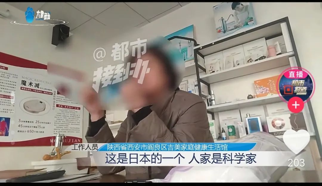 据河南广播电视台报道,陕西陈女士投诉称,61岁的婆婆因病去世后,她整理遗物时发现婆婆生前竟花10多万买各种“神器”,其中有4000元的水龙头、15000元的床垫、300元的眼罩、500元的内裤……这些产品都指向一家叫“吉美”的公司,老人生前甚至因为深信这些产品对外宣传的特殊功效,放弃了吃药。记者经过暗访发现,事情远不止陈女士反映得这么简单。养生馆里宣传小分子水泡脚能治糖尿病,“吉美”工作人员自曝靠拉人头日入1万5,“神水”和“神器”缔造了一个个离谱的“奇迹”,一群人打着养生和保健的旗号,正在掏空老年人的养老钱。 ![]() 河南广播电视台报道截图 陈女士告诉记者,自己61岁的婆婆前段时间去世,整理婆婆遗物时,发现每月退休金3000多的婆婆工资卡上就剩下五十多元,并且房间里堆满了“吉美”公司生产的价格4000多的水龙头、15000多的床垫等宣称具有养生保健功能的产品。翻看婆婆的手机,有几段视频让她觉得十分可疑,视频中,一名女子在做试验宣传小分子团水,一根检测笔放在纯净水里不亮灯,但是放在所谓小分子团水里就亮起了灯。 ![]() 河南广播电视台报道截图 陈女士表示,去年八月份婆婆生病住院时,家人就发现了这个问题,但没想到老人陷得这么深。陈女士还在遗物里面发现了一本厚厚的听课笔记,更证实了这一点:“用了‘吉美’的产品,什么干细胞治疗,能让癌症等词汇消失,这不就是骗人的吗?!零风险高回报,成为会员之后拉人头还能给你提成,一分钱没挣到还把钱都花完了,肯定是个骗局!” ![]() 河南广播电视台报道截图 “老人退休金月入3000多元,工资卡却仅剩50多元,还曾贷款数万元!翻看老人手机才发现,老人深陷“吉美健康养生馆”的养生骗局,被洗脑购买了一系列天价“养生神器”——4000元的小分子水龙头、15000元的磁疗床垫、15000元的四件套……老人对它们的“神奇”效果深信不疑,甚至在去世前十几天仍频繁前往该养生馆”,陈女士说。 最终,61岁的婆婆于去年11月突发心梗离世。陈女士认为,拒医、依赖无效产品及巨额花费的心理压力是诱因。 目前,当地市场监管部门针对陈女士的投诉以涉嫌虚假宣传立案调查。 报道称,在湖南吉美生物科技发展有限公司,工作人员直言不讳地告诉记者,要想发财就得“拉人头”!甚至亲自给记者展示,仅仅拉了7个人,什么都不做,一天就能收入15000元,只要介绍的人够多,最多能拿140万!当记者质疑这是不是传销时,吉美工作人员毫不避讳称他们就是做传销出来的,只是他们公司有了商务部颁发的直销许可证,就披上了直销这个合法的外衣,模式都一样。 ![]() 河南广播电视台报道截图 公开资料显示,湖南吉美生物科技公司成立于2009年,经营范围包括从事直销业务;食品生产;食品销售;保健食品生产;饮料生产;茶叶制品生产;出版物批发;医疗器械互联网信息服务;第二类医疗器械生产;第三类医疗器械生产;第三类医疗器械经营;卫生用品和一次性使用医疗用品生产;化妆品生产;出版物互联网销售;医疗服务;特殊医学用途配方食品生产;调味品生产;食品互联网销售;网络文化经营;第二类增值电信业务;广播电视节目制作经营等。 |